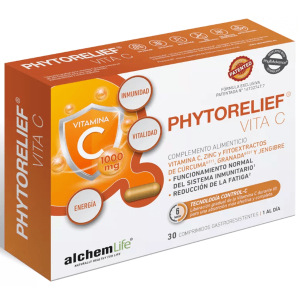 https://www.mifarma.eu/alchemlife-phytorelief-vita-c-1000-mg-30-tablets523085031980Alchemlife Phytorelief Vita C 1000 mg 30 Tablets<p><span>Alchemlife Phytorelief Vita C</span> is a food supplement that contains a dose of <span>1000 mg of Vitamin C, Zinc and a combination of phytoextracts of Turmeric, Pomegranate and Ginger.</span></p><p> These ingredients are designed to <span>help improve the defenses and enhance the body s vitality.</span></p><p> It is also beneficial for the <span>respiratory system.</span></p><p> Maintain the immune system in optimal condition and promote good health in general.</p><p> Without gluten, added sugars, lactose, preservatives without artificial flavors.</p><p> Suitable for <span>diabetics and vegans.</span><br></p><p> <span>From 12 years old.</span></p>https://assets.atida.com/transform/6421d4a8-d6c8-4002-83c8-7549911d9416/Alchemlife-Phytorelief-Vita-C-1000-mg-30-Comprimidos?io=transform:extend,width:250,height:2509.99instock12.539.0818171818182202.54Alchemlifehttps://www.mifarma.eu/media/catalog/product/4/f/0/f/4f0fbebac7e3e1d219211561489cfeeffc53eec3_Product_Tile_Thumbnail_Alchemlife_Phytorelief_Vita_C_1000_mg_30_Comprimidos.png/Vitamins and Supplements/Vitamins and Supplements/Supplements/Atida Cash 5%2024-09-16T06:01:27+0000