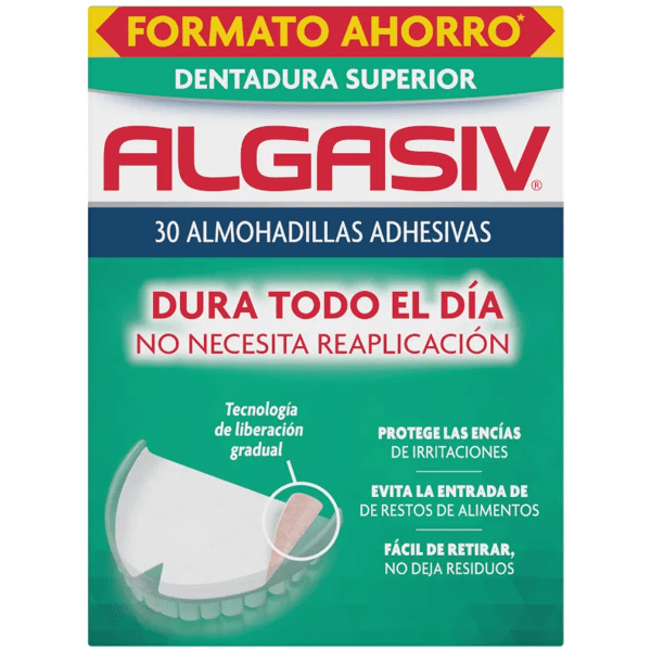 https://www.mifarma.eu/algasiv-pillow-top-30units480332325095Algasiv pillow top 30units<p><b>Algasiv pillow top 30units</b></p><p> The Algasiv adhesive pads set and adapted dentures to the gums.</p><p> It contains a glue extracted from marine algae, combined with another adhesive that ensures a perfect application and seamless teeth all day, preventing it from moving so it prevents discomfort and irritation.</p>https://assets.atida.com/transform/c6644a95-5b08-4f2f-b0ca-7bb3db124804/Algasiv-Almohadilla-Superior-30-Uds?io=transform:extend,width:250,height:2509.99instock13.639.0818171818182273.64Algasivhttps://www.mifarma.eu/media/catalog/product/5/9/d/c/59dcfe96fd74497b746dc1ee42bb9131126b69d6_Algasiv_Almohadilla_Superior_30_Uds.png/Health and Hygiene/Dental and Oral Care/Dentures Care/Health and Hygiene/Health and Hygiene/Dental and Oral Care/Atida Cash 5%2024-09-16T05:59:03+0000