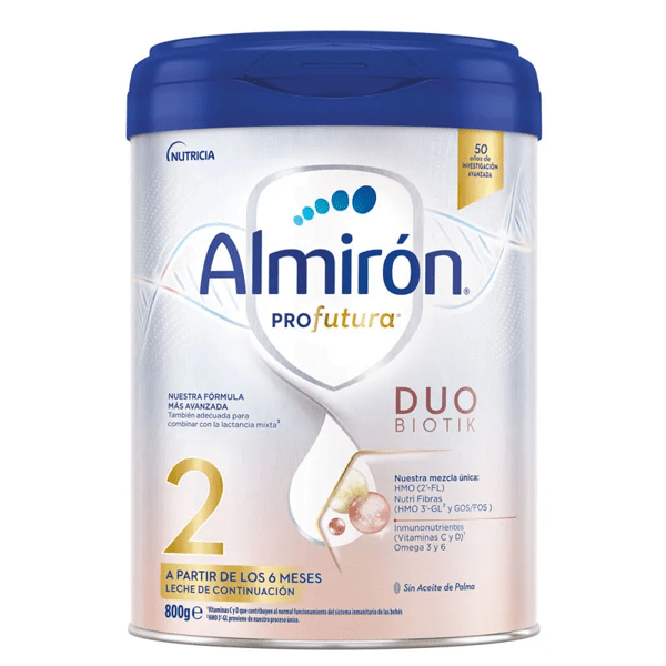 https://www.mifarma.eu/almiron-milk-profutura-duobiotik-2-800-gr620776729663Almirón Milk Profutura Duobiotik 2 800 gr<p>Follow-on milk for babies from 6 months, <span>without palm oil.</span></p><p> Contains LCPs (DHA/ALA) polyunsaturated fatty acids, scGOS/lcFOS(9:1) and a mixture of galacto- and fructo-oligosaccharides, as well as vitamins A, C and D that contribute to the normal functioning of the immune system.</p><p> It favors the baby s immune and brain system.</p><p> Strengthens the immune system through the microbiota, through a combination of prebiotics and postbiotics.</p><p> Thanks to its higher content of DHA, it favors the correct cognitive and visual development of the baby.<br></p><p> Proprietary blend of GOS/FOS with milk fat, which improves digestion and reduces constipation.</p><p> It also contains ALA that promotes brain development and nervous tissue.</p><p> The container includes a scoop for the correct dosage of powdered milk.<br></p>https://assets.atida.com/transform/dfb29c8b-c67f-4564-9f33-3d80e560ebbb/Almiron-Duobiotik-2-Leche-Profutura-800-gr?io=transform:extend,width:250,height:25023.99instock33.6721.809089909091299.68Almirónhttps://www.mifarma.eu/media/catalog/product/b/a/5/0/ba50c1bd942bec516c54bb5d6e5c661d3006d638_Almiron_Duobiotik_2_Leche_Profutura_800_gr.png/Baby and Mom/Feeding/Infant Milk/Baby and Mom/Baby and Mom/Feeding/cyber_monday_pt_int/Mifarma Days NO/Atida Cash 5%/NO MIFARMA DAYS/Mifarma Days: Up to 70% off!/Mifarma Days! Up to 70% off/Up to 35% off Almirón2024-09-16T06:06:44+0000