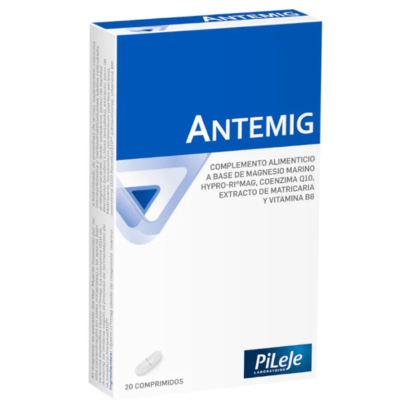 https://www.mifarma.eu/antemig-30-tablets841010140114Antemig 20 Tablets<p><strong>Antemig 20 Tablets</strong></p><p> Antemig is composed of marine magnesium, coenzyme Q10, feverfew extract and vitamin B6, recommended in case of migraines and fatigue. Especially recommended for athletes due to the high loss of magnesium with effort.</p><p> <strong>Ingredients</strong></p><p> Hypro-ri-mag (magnesium oxide and rice protein hydrolyzate), anti-caking agents: dicalcium phosphate, magnesium stearate and talc, stabilizer: microcrystalline cellulose and sodium carboxymethylcellulose, caking agent: corn starch, dry extract of Matricaria Tanacetum parthenium (flowers) (support: amltodextrin), coenzyme Q10 KanekaQ10 (ubiquinone), vitamin B6.</p><p> <strong>Nutritional Analysis</strong></p><p> Average value per 1 tablet Magnesium 112.5 mg Coenzyme Q10 100 mg Feverfew Extract 100 mg Vitamin B6</p><p> <strong>How to use</strong></p><p> 1 tablet a day with a full glass of water for 30 days.</p><p> As a precaution, seek advice from a health professional before combining coenzyme Q10 and oral anticoagulants.</p>https://assets.atida.com/transform/f5fea65e-b411-4a69-9a79-e64de2ae51c7/Pileje-Antemig-20-Comprimidos?io=transform:extend,width:250,height:25020.99instock28.4319.081817181818267.44Pilejehttps://www.mifarma.eu/media/catalog/product/7/a/b/d/7abd4f926251bbe3cae4c232495c4a40265aa0d9_Pileje_Antemig_20_Comprimidos.png/Vitamins and Supplements/Vitamins and Supplements/Minerals/Vitamins and Supplements/Supplements/Vitamins and Supplements/Vitamins (A-K)/Mifarma Days: Up to 70% off!/Up to 50% off Pileje and Lactibiane/NO MIFARMA DAYS/Mifarma Days! Up to 70% off/Last Opportunities/Mifarma Days NO2024-09-16T06:19:26+0000