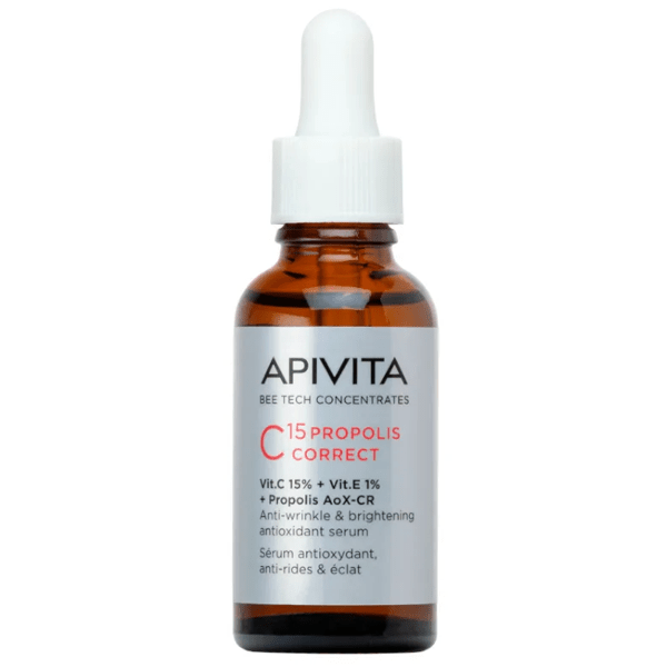 https://www.mifarma.eu/apivita-c15-propolis-corrective-serum-30-ml705974607949Apivita C15 Propolis Corrective Serum 30 ml<p><span style="font-weight: bold;">Apivita C15 Propolis Corrective Serum 30 ml</span></p><p> C15 Propolis Corrective Serum, a masterful fusion of science and nature to reveal the secret to <span style="font-weight: bold;">radiant, rejuvenated skin.</span></p><p> At its heart, a dynamic trio of active ingredients – <span style="font-weight: bold;">15% Vitamin C</span> in its purest, most stabilized form, <span style="font-weight: bold;">Vitamin E</span> and the exclusive <span style="font-weight: bold;">patented AoX-CR Propolis</span> – form an insurmountable shield <span style="font-weight: bold;">against oxidative damage</span> , promoting unprecedented <span style="font-weight: bold;">anti-aging defense</span> .</p><p> This innovative formula not only <span style="font-weight: bold;">fights the visible signs of aging</span> , but also <span style="font-weight: bold;">doubles the antioxidant power,</span> offering complete protection against free radicals.</p><p> Each drop is a promise of <span style="font-weight: bold;">fewer wrinkles, fewer blemishes, and a radiance that speaks of health and vitality.</span></p><p> Designed for <span style="font-weight: bold;">fast absorption</span> , it leaves your skin soft, illuminated and exquisitely <span style="font-weight: bold;">non-greasy.</span></p><p> <span style="font-weight: bold;">Test results:</span> 88% reduction in wrinkles and 58% reduction in spots after 56 days of regular use.</p>https://assets.atida.com/transform/5cce295f-de2c-4838-b889-41e30f3f6f55/Apivita-Serum-Corrector-C15-Propoleo-30-ml?io=transform:extend,width:250,height:25026.99instock41.922.3057841239673614.91Apivitahttps://www.mifarma.eu/media/catalog/product/0/c/d/2/0cd2cdb1f737cb68050e7fb9d7c8d708bfc52090_Apivita_Serum_Corrector_C15_Propoleo_30_ml.png/Cosmetics and Beauty/Cosmetics and Beauty/Facial/Cosmetics and Beauty/Facial/Anti-wrinkle/Cosmetics and Beauty/Facial/Dark spot corrector/Cosmetics and Beauty/Facial/Serum/Cosmetics and Beauty/Facial/Dark spot corrector/Serum/Up to 40% off Uriage and Apivita/NO MIFARMA DAYS/Mifarma Days: Up to 70% off!/Mifarma Days! Up to 70% off/Mifarma Days NO2025-09-03T23:41:55+0000
