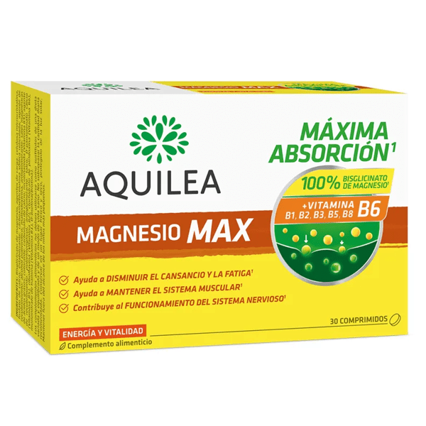 https://www.mifarma.eu/aquilea-magnesium-max-bisglycinate-30-tablets406506582730Aquilea Magnesium Max (Bisglycinate) 30 Tablets<p><strong>Aquilea Magnesium Max (Bisglycinate) 30 Tablets</strong></p><p> Formulated with 100% Magnesium Bisglycinate, one of the highest absorption sources of magnesium that: helps reduce tiredness and fatigue.</p><p> Improves the condition of the bones and joints.</p><p> In addition, it contains vitamins of group B (B1, B2, B3, B5, B6 and B8) that help normal energy metabolism.</p>https://assets.atida.com/transform/84c37201-f1ec-4cff-838f-a46b7dd3ccec/Aquilea-Magnesio-Max-Bisglicinato-30-Comprimidos?io=transform:extend,width:250,height:25015.99instock15.9914.53636263636400Aquileahttps://www.mifarma.eu/media/catalog/product/4/8/3/b/483bb46df5d5154a77bd9829c20da26243a01f82_Aquilea_Magnesio_Max_Bisglicinato_30_Comprimidos.png/Vitamins and Supplements/Supplements/Bones, Joints, and Muscles/Mini Prices/Vitamins and Supplements/Supplements/Atida Cash 5%/cyber_monday_pt_int/Vitamins and Supplements/15% off Aquilea2024-09-16T05:55:45+0000