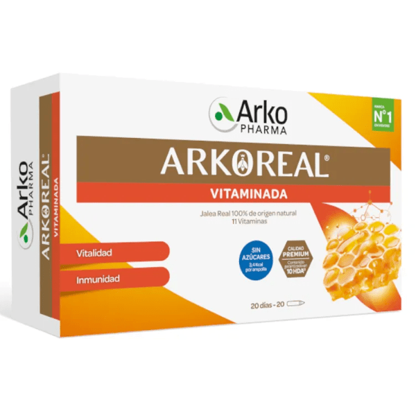 https://www.mifarma.eu/arko-royal-royal-jelly-vitamin-sugar-free-20-ampoules709195451409Arko Royal Royal Jelly Vitamin Sugar Free 20 Ampoules<p><b>Arko Royal Royal Jelly Vitamin Sugar Free 20 Ampoules</b></p><p> Food supplement made with bse of royal jelly and 11 vitamins indicated to improve the defense system of our body.</p><p> Vitamins A and B2 contribute to the maintenance of the skin and vision under normal conditions. Vitamins B1, B2, B3, B5, B6, B8, B12 and C contribute to normal energy metabolism.</p><p> It helps to reduce tiredness and fatigue.</p>https://assets.atida.com/transform/f3a0249b-1d4a-4b08-94dd-38250fea97ef/Arkopharma-ArkoReal-Vitaminada-sin-Azucar-20-Ampollas?io=transform:extend,width:250,height:25016.99instock29.9915.4454535454554313Arkopharmahttps://www.mifarma.eu/media/catalog/product/0/f/4/2/0f425f78a9afd9945b8ad68fb82ad3c6f63858b6_Arkopharma_ArkoReal_Vitaminada_sin_Azucar_20_Ampollas.png/Atida Cash 5%/Herbal Remedies/Herbal Remedies/Royal Jelly/Vitamins and Supplements/Bones, Joints, and Muscles/First Aid Kit/Vitamins and Supplements/Vitamins and Supplements/Multivitamins/Up to 70% off/NO MIFARMA DAYS/Singles' Day: Up to 70% off!/15% off Arkopharma2024-09-16T06:12:00+0000