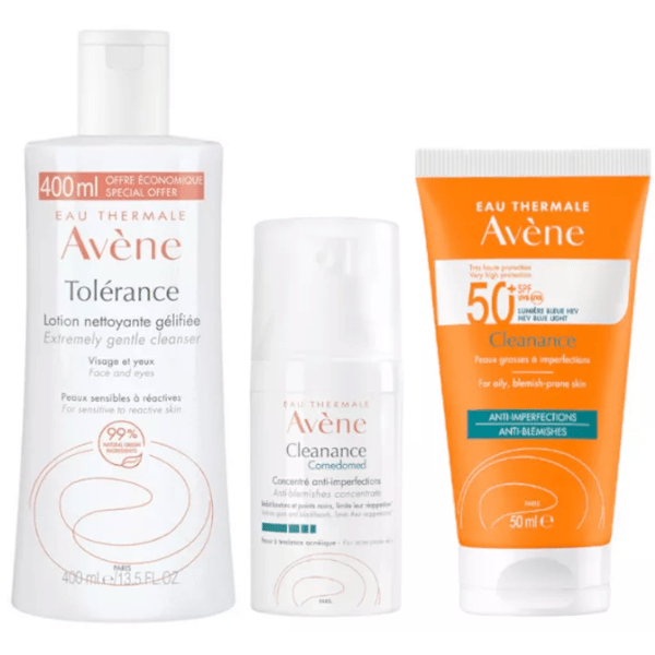 Avène Tolerance Cleanser 400 ml + Cleanance Comedomed 30 ml + Solar SPF50+ 50 ml