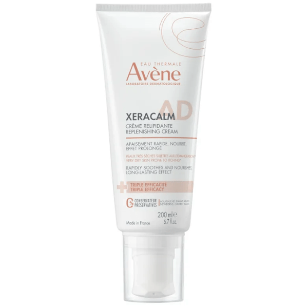 https://www.mifarma.eu/avene-xeracalm-ad-cream-200ml600124671684Avene Xeracalm AD cream 200ml<p><b>Avene cream Xeracalm AD</b></p><p> Ideal relipidizing cream for all types of moderate or intense skin dryness of the skin of the baby, the child and adult:</p><p> -skin with atopic tendency;</p><p> -skin prone to irritation, redness and itching due to dryness of the skin;</p><p> -dry skin by nature.</p><p> Anti-irritant nourishing cream getting to soothe sensations of itching.</p><p> Its complex l-modulia reduces the sensation of itching due to dryness of the skin, relieves redness and irritation caused by cutaneous hyperreactivity.</p><p> The CER-OMEGA repair, nourish and strengthen the protective film of the skin allowing it better resists external aggressions.</p><p> Avène thermal water contains soothing and desensitizing, mitigates feelings of inconfort and softens the skin.</p><p> Fruit of the "Sterile cosmetic" generation does not contain preservatives, perfume, alcohol or colors, this gets skin to recover its well-being, relief and softness.</p><p> <b>Tips for use:</b></p><p> Roll the tube to get to drain completely.</p><p> <b>How to use:</b></p><p> Apply 1 or 2 times a day in dry areas of the face and the body after having them cleaned previously (for best results apply to clean with cleaner oil XeraCalm AD). Recommended for use in place of the Balsam XeraCalm AD. After use, remove the excess product and close.</p>https://assets.atida.com/transform/8ec46837-cfeb-4fe6-b7e2-4c6a125517b7/Avene-XeraCalm-A-D-Crema-Relipidizante-200-ml?io=transform:extend,width:250,height:25019.99instock22.6216.520660157025122.63Avenehttps://www.mifarma.eu/media/catalog/product/a/c/8/5/ac8509cf2239130ec2cae2bde0f150995b70fa1c_Avene_XeraCalm_A_D_Crema_Relipidizante_200_ml.png/Cosmetics and Beauty/Altered Skin/Cosmetics and Beauty/Moisturizers/cyber_monday_pt_int/Up to 70% off/Cosmetics and Beauty2024-09-16T06:05:35+0000