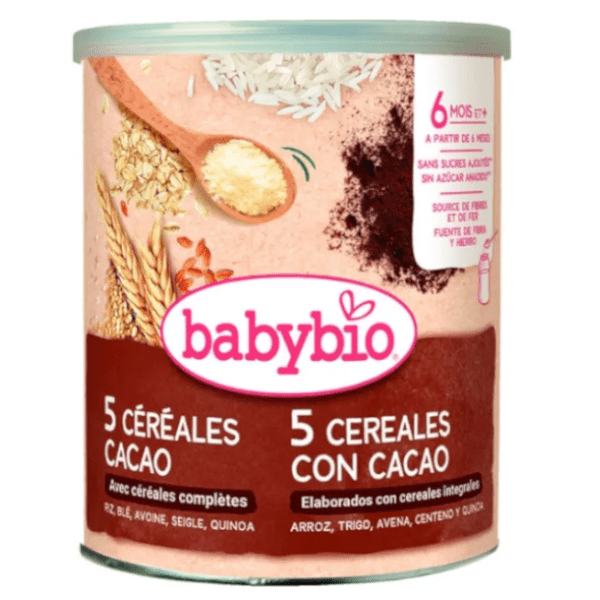 https://www.mifarma.eu/babybio-cocoa-and-quinoa-cereal-powder-220-gr404459402603BabyBio 5 Cereals with Cocoa +6m 220g<p><span style="font-weight: 700;">BabyBio 5 Cereals with Cocoa +6m 220g</span></p><p> In Babybio's Cocoa and Quinoa baby food you will find all the flavor of <span style="font-weight: bold;">cocoa with the added benefit of rice, wheat, oats, rye and quinoa,</span> which will provide your baby with proteins, minerals and fiber with an exceptional content of essential amino acids so that they can grow strong and healthy.</p><p> Babybio's Cacao baby cereals are adapted for <span style="font-weight: bold;">children over 6 months old</span> with a guaranteed vitamin B1 content to help your baby grow strong and healthy.</p>https://assets.atida.com/transform/8d690d59-4112-4af4-8fa6-11d0092c79a1/BabyBio-5-Cereales-con-Cacao-6m-220-gr?io=transform:extend,width:250,height:2504.99instock4.994.536362636363600Babybiohttps://www.mifarma.eu/media/catalog/product/5/6/e/8/56e8ca131474d4d7fafab1613cf878814eac7b24_BabyBio_5_Cereales_con_Cacao_6m_220_gr.png/Baby and Mom/Baby Food and Jars/Baby and Mom2024-10-21T23:44:50+0000
