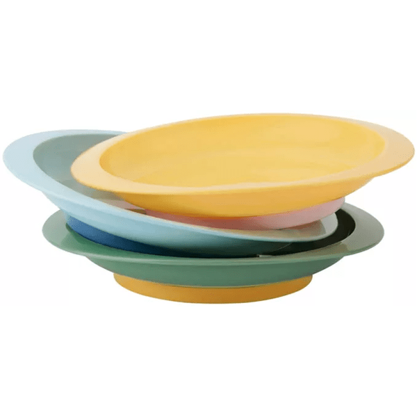 We can t guarantee less food will fall on the floor, but the raised edges of these child-friendly plates will help your little one eat on his own. Thanks to this set of 3 you will always have a plate available, and you can vary the colors to vary the pleasures. Being non-slip, thanks to its silicone ring located under the plate, they are unbreakable. They are also suitable for the microwave (without the ring) and the dishwasher. From a practical standpoint, they stack for easy transport or more compact storage. With these dishes that resist mash battles and pea throwing, you will be well equipped.