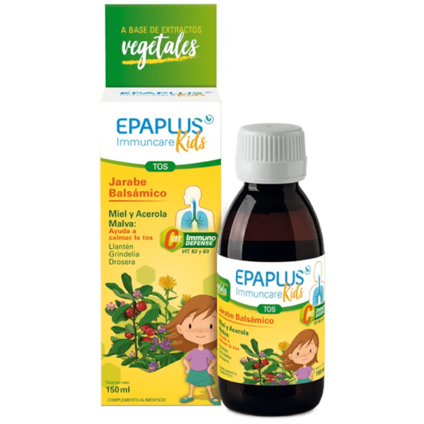 https://www.mifarma.eu/balsamic-syrup-children-epaplus-immuno-kids-150ml 174702192377 Balsamic Syrup Children Epaplus Immuno Kids 150ml <p><b>Epaplus Immuno Kids Balsamic Syrup 150ml</b> is a food supplement made with raw materials of natural origin.</p><p> With honey and acerola, a fruit with a high content of vitamin C that contributes to the normal functioning of the immune system.</p><p> Plantain has a soothing effect on the throat, pharynx, and mouth cords.</p><p> The grindelia carries out a balsamic and expectorant action.</p><p> For its part, the sundew helps to maintain the health of the respiratory system.</p><p> It helps to strengthen the defenses of the smallest of the house, thanks to its content of vitamins B2 and B3, as well as vitamin C.</p><p> Indicated for <b>children from 3 years</b> .</p> https://assets.atida.com/transform/a0ab1dec-336f-4fff-b28e-d3c96ceb0a4e/Epaplus-Immuncare-Kids-Tos-Jarabe-Balsamico-150-ml?io=transform:extend,width:250,height:250 6.99 instock 10.71 6.3545444545455 35 3.72 Epaplus https://www.mifarma.eu/media/catalog/product/0/b/b/7/0bb74401be048eeb62ddf8423b0f95daba96b969_Epaplus_Immuncare_Kids_Tos_Jarabe_Balsamico_150_ml.png /Baby Vitamins /Vitamins and Supplements/Children’s Vitamins /cyber_monday_pt_int /Atida Cash 5% /Vitamins and Supplements /Mifarma Days NO /NO MIFARMA DAYS /Singles' Day: Up to 70% off! 2024-09-16T05:44:28+0000