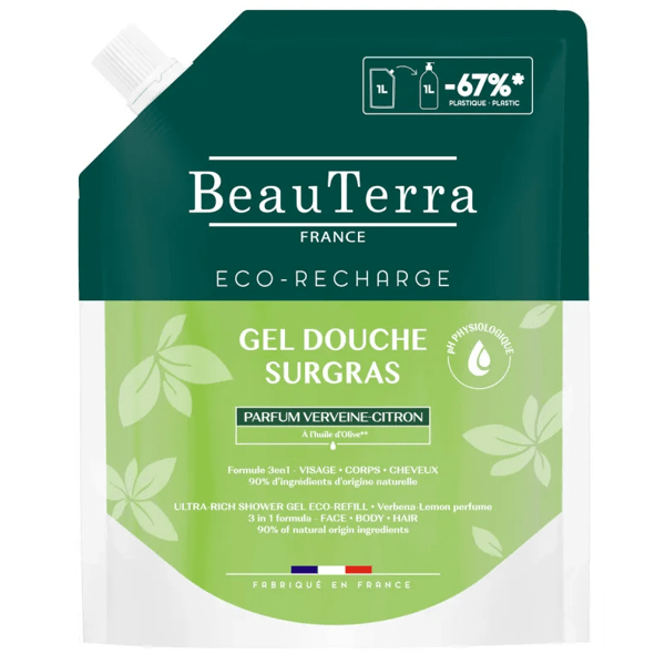 https://www.mifarma.eu/beauterra-refill-verbena-lemon-shower-gel-1-liter249576286559Beauterra Refill Verbena-Lemon Shower Gel 1 Liter<p><span style="font-weight: bold;">Beauterra Refill Verbena-Lemon Shower Gel 1 Liter</span></p><p> This <span style="font-weight: bold;">super-fatty shower gel</span> transforms your daily hygiene routine into a true ritual of care and well-being.</p><p> <span style="font-weight: bold;">BENEFITS</span></p><p> - Its <span style="font-weight: bold;">soap-free</span> formula is enriched with water-soluble olive oil and glycerin, ingredients known for their moisturizing and protective properties.</p><p> - This gel not only cleanses gently, but also respects the skin's natural pH.</p><p> - It also leaves a delicate and lasting fragrance on the skin.</p><p> - It is suitable for <span style="font-weight: bold;">the whole family from 3 years old</span> .</p><p> - Ideal for all skin and hair types.</p><p> - Suitable for vegans.</p>https://assets.atida.com/transform/34ebe589-1971-44fd-828b-42d357cfc292/Beauterra-Refill-Gel-de-Ducha-Verbena-Limon-1-L?io=transform:extend,width:250,height:2505.99instock8.84.9504122231405322.81Beauterrahttps://www.mifarma.eu/media/catalog/product/9/8/1/4/9814a22ae95120f7645564d89bf538c47879a561_Beauterra_Refill_Gel_de_Ducha_Verbena_Limon_1_L.png/Health and Hygiene/Health and Hygiene/Body Care/Health and Hygiene/Body Care/Shower and Bath Gel2026-03-10T00:49:31+0000