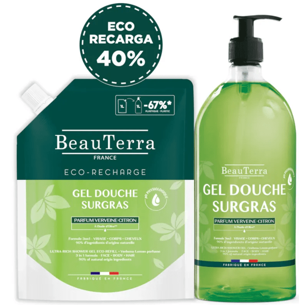 https://www.mifarma.eu/beauterra-verbena-lemon-shower-gel-1-liter-refill564658777625Beauterra Verbena-Lemon Shower Gel 1 Liter + Refill<p><span style="font-weight: bold;">Beauterra Verbena-Lemon Shower Gel 1 Liter + Refill</span></p><p> This <span style="font-weight: bold;">super-fatty shower gel</span> transforms your daily hygiene routine into a true ritual of care and well-being.</p><p> <span style="font-weight: bold;">BENEFITS</span></p><p> - Its <span style="font-weight: bold;">soap-free</span> formula is enriched with water-soluble olive oil and glycerin, ingredients known for their moisturizing and protective properties.</p><p> - This gel not only cleanses gently, but also respects the skin's natural pH.</p><p> - It also leaves a delicate and lasting fragrance on the skin.</p><p> - It is suitable for <span style="font-weight: bold;">the whole family from 3 years old</span> .</p><p> - Ideal for all skin and hair types.</p><p> - Suitable for vegans.</p>https://assets.atida.com/transform/6da7d857-a063-4e6c-a155-f17d32964054/Beauterra-Gel-Ducha-Verbena-Limon-1L-Refill?io=transform:extend,width:250,height:25010.99instock15.259.0826436280992284.26Beauterrahttps://www.mifarma.eu/media/catalog/product/e/2/6/5/e265062b5d7ef238434f93674ede393e8689d301_Beauterra_Gel_Ducha_Verbena_Limon_1L_Refill.png/Health and Hygiene/Health and Hygiene/Body Care/Health and Hygiene/Body Care/Shower and Bath Gel2026-03-11T01:08:18+0000