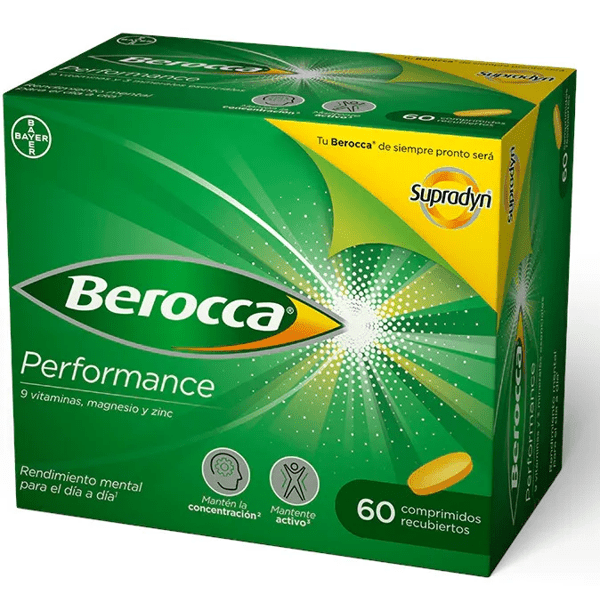 https://www.mifarma.eu/berocca-performance-bayer-60-tablets 209067596716 Berocca Performance Vitamins and Performance 60 Tablets <p><strong>Berocca Performance Vitamins and Performance Bayer 60 Tablets</strong></p><p> A specific combination of vitamins and minerals, clinically tested, that <strong>contributes to physical and mental performance</strong> .</p><p> It is indicated for all those people <strong>aged 18 and over</strong> who need to help their intellectual performance on a continuous basis: work, studies, situations of intense intellectual activity.</p><p> It reduces the feeling of fatigue and promotes attention, concentration and memory.</p><p> Vitamins B2, B6, and B12 help reduce tiredness and fatigue.</p><p> Pantothenic acid contributes to normal mental performance.</p><p> Zinc contributes to normal cognitive function (concentration, attention, and memory). Magnesium itself supports normal muscle function.</p> https://assets.atida.com/transform/8b422f75-0f95-472c-8679-b581b9cbbdee/Berocca-Performance-Vitaminas-y-Rendimiento-60-Comprimidos?io=transform:extend,width:250,height:250 20.99 instock 25.99 19.081817181818 19 5 Berocca https://www.mifarma.eu/media/catalog/product/1/5/d/e/15dea8df8b377267770ad98122ba91683183b26f_Berocca_Performance_Vitaminas_y_Rendimiento_60_Comprimidos.png /Vitamins and Supplements /Vitamins and Supplements/Multivitamins /Vitamins and Supplements/Vitamins (A-K) /cyber_monday_pt_int /Up to 70% off /Mifarma Days NO /15% off Berocca 2024-09-16T05:46:07+0000