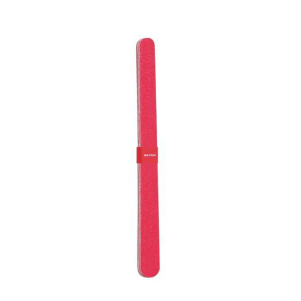 The thicker red side is suitable for filing and the white side is for polishing and finishing.