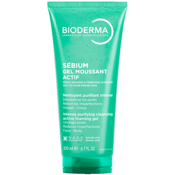 https://www.mifarma.eu/bioderma-sebium-gel-moussant-actif-200-ml625394192100Bioderma Sébium Gel Moussant Actif 200 ml<p><span style="font-weight: bold;">Bioderma Sébium Gel Moussant Actif 200 ml<br></span></p><p> Daily <span style="font-weight: bold;">soap-free</span> facial cleanser for <strong>oily and acne-prone skin</strong> , helping to unclog pores and reduce blemishes.</p><p> <span style="font-weight: bold;">BENEFITS</span></p><p> - Removes traces of makeup and impurities, respecting the skin's balance.</p><p> - Its formula combines <span style="font-weight: bold;">salicylic acid (1.8%)</span> and <span style="font-weight: bold;">glycolic acid (1%)</span> , which help reduce blemishes and improve skin texture.</p><p> - Zinc gluconate regulates shine.</p><p> - Caprylglucoside is a gentle cleansing base that gently cleanses while respecting the skin's balance.</p><p></p><p> - Non-comedogenic.</p><p> <span style="font-weight: bold;">Proven effectiveness:</span></p><p> -32% of grains***.</p><p> -17% blackheads*.</p><p> **Dermatological score, in 29 subjects for 28 days with twice-daily application.</p><p> ***Dermatological score, on 30 subjects for 21 days with twice-daily application, with combination and acne-prone skin (mild to moderate).</p>https://assets.atida.com/transform/ccd5e4bf-dfd9-4545-b208-08e08774a5e1/Bioderma-Sebium-Gel-Moussant-Actif-200-ml?io=transform:extend,width:250,height:25011.99instock13.639.9090899090909121.64Biodermahttps://www.mifarma.eu/media/catalog/product/a/9/5/6/a956c6591da40532869fb63b3152aad7b54f936d_Bioderma_Sebium_Gel_Moussant_Actif_200_ml.png/Cosmetics and Beauty/Cosmetics and Beauty/Facial/Cosmetics and Beauty/Facial/Acne/Cosmetics and Beauty/Facial/Facial Cleansing/Up to 70% off/Cosmetics and Beauty/Facial/Makeup removers2024-09-16T06:06:55+0000
