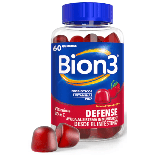 https://www.mifarma.eu/bion3-defense-60-gummies784647416319Bion3 Defense 60 Gummies<p></p><p><span>Bion3 Defense 60 Gummies</span></p> Discover the power of maintaining a <span>strong immune system</span> with Bion3 Defense Gummies, specifically designed to act from the starting point of your health: the intestine.<p></p><p> With an impressive <span>70% of immune cells</span> residing there, the intestine is not only the center of our digestive processes, but also a fundamental pillar for <span>immune health.</span></p><p> Gummies are not only a pleasure to the palate with their irresistible <span>red fruit flavor,</span> but they are also carriers of health with a measured mix of <span>Vitamin C and Zinc,</span> thus promoting an optimally <span>functioning immune system</span> .</p><p> <span>Vitamin C</span> is your perfect ally against <span>tiredness and fatigue,</span> keeping you energetic and ready to face the day.</p><p> Each gummy is infused with <span>Vitamin B3 and 150 million probiotics (B. coagulans),</span> carefully selected to reach the intestine alive and promote its health.</p><p> All this in a <span>vegan formula, free of gluten, lactose, animal gelatin, artificial flavors, colors and sweeteners,</span> making them perfectly suitable for a wide range of diets and preferences.</p>https://assets.atida.com/transform/e4c90a07-f799-497d-957b-227e86a8f3c5/Bion3-Defense-con-Probioticos-Vitamina-C-B3-y-Zinc-60-Gummies?io=transform:extend,width:250,height:25016.99instock18.9915.445453545455112Bion3https://www.mifarma.eu/media/catalog/product/8/f/f/e/8ffebfb1e06da51d84ecc7179a7e2e77163c7a60_Bion3_Defense_con_Probioticos_Vitamina_C_B3_y_Zinc_60_Gummies.png/Vitamins and Supplements/Vitamins and Supplements/Minerals/Vitamins and Supplements/Probiotics/Vitamins and Supplements/Supplements/Vitamins and Supplements/Vitamins (A-K)/cyber_monday_pt_int/Mini Prices/Up to 70% off/Mifarma Days NO/Singles' Day: Up to 70% off!/NO MIFARMA DAYS/30% off 2nd unit Bion32024-09-16T06:16:16+0000