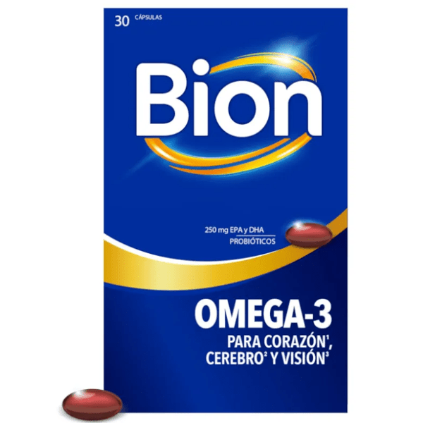 https://www.mifarma.eu/bion3-omega-3-heart-brain-and-vision-30-capsules256107154846Bion3 Omega-3 Heart, Brain and Vision 30 Capsules<p><span style="font-weight: bold;">Bion3 Omega-3 Heart, Brain and Vision 30 Capsules</span></p><p> <span style="font-weight: bold;">Bion3 Omega-3 with probiotics is a food supplement designed to provide comprehensive support for the heart, brain, and vision</span> . This product combines the power of Omega-3 fatty acids, specifically EPA and DHA, which are essential for the normal functioning of the body.</p><p> - <span style="font-weight: bold;">EPA and DHA</span> contribute to maintaining heart health, as well as preserving cognitive function and vision under normal conditions.</p><p> <span style="font-weight: bold;">Each Bion3 Omega-3 capsule contains 1 billion colony-forming units of the probiotic Bacillus subtilis DE111</span> , known for its ability to survive in the digestive tract and help maintain a healthy balance of gut flora. This feature is particularly beneficial, as a healthy gut is linked to better nutrient absorption and an optimized immune response.</p><p> Incorporating Bion3 Omega-3 into your daily routine is an excellent option for those looking to supplement their diet with essential nutrients that support overall well-being.</p><p> <span style="font-weight: bold;">This supplement not only strengthens heart and brain health, but also promotes good digestive health</span> , making it an ally for a healthy lifestyle.</p>https://assets.atida.com/transform/604e3baf-8213-4bd2-90de-2bef1051b62c/Bion3-Omega-3-Corazon-Cerebro-y-Vision-30-capsulas?io=transform:extend,width:250,height:25013.99outofstock16.9912.718180818182183Bion3https://www.mifarma.eu/media/catalog/product/8/8/0/a/880a6a1324f0e8ef79a72284c48470e864a4922a_Bion3_Omega_3_Corazon_Cerebro_y_Vision_30_capsulas.png/Vitamins and Supplements/Supplements/Digestive System/Vitamins and Supplements/Vitamins and Supplements/Probiotics/Vitamins and Supplements/Supplements2025-12-04T00:49:14+0000