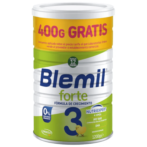 Starting at one year of age, as part of a varied and balanced diet. At this stage, a minimum of half a liter of dairy products per day is recommended, equivalent to two glasses of Blemil 3 Forte growth formula.