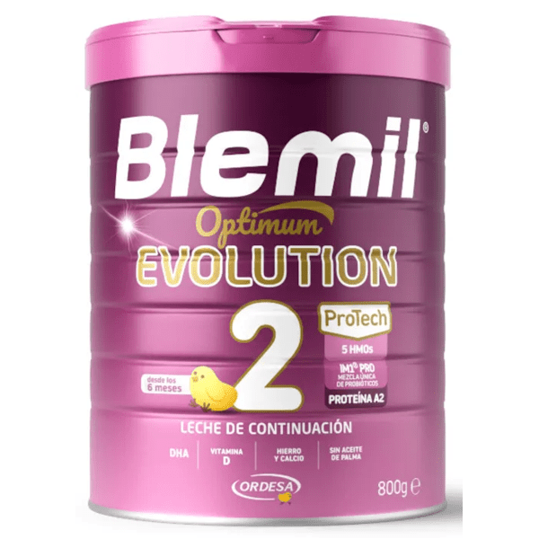 https://www.mifarma.eu/blemil-optimum-evolution-2-follow-on-milk-800-gr164623470753Blemil Optimum Evolution 2 Follow-on Milk 800 gr<div><span>Blemil Optimum Evolution 2 Follow-on Milk 800 gr</span></div><div><br></div><div> Blemil 2 Optimum Evolution is an excellent alternative for mixed breastfeeding and the transition to bottle feeding recommended <span>from 6 months</span> .</div><div><br></div><div> It is the first Spanish infant formula with easily digestible A2 protein.</div><div><br></div><div> With IM1 PRO®: exclusive mix of 6 probiotics, one more step towards the diversity of probiotics present in breast milk.</div><div><br></div><div> Includes Bifidobacterium infantis IM1, a patented probiotic for exclusive use by Ordesa.</div><div><br></div><div> 5 HMOs, combination of 5 HMOs (3 -SL, 6 -SL, 2 -FL, DFL and LNT), oligosaccharides present in breast milk.</div><div><br></div><div> <span>Bioactive proteins present in breast milk</span> : Milky osteopontin, MFGM and alpha-lactalbumin.</div><div><br></div><div> Also formulated with DHA and Omega-3 fatty acid that contributes to the normal <span>visual development</span> of children up to 12 months, as long as the intake is greater than 100 mg.</div><div><br></div><div> <span>Source of iron and calcium.</span></div><div><br></div><div> Pleasant aroma and excellent flavor, thanks to its milk fat content.</div><div><br></div><div> <span>No palm oil.</span></div><div><br></div><div> <span>Source of vitamins:</span> A, C and D, zinc and iron, which help the normal functioning of the immune system.</div>https://assets.atida.com/transform/5e26b0b7-ec45-4853-b918-0a17fb863970/Blemil-Optimum-Evolution-2-Leche-de-Continuacion-800-gr?io=transform:extend,width:250,height:25024.99instock31.9922.718180818182227Blemilhttps://www.mifarma.eu/media/catalog/product/3/e/2/3/3e231bc71c06a36b5710fca9b6a7d22d6ce22733_Blemil_Optimum_Evolution_2_Leche_de_Continuacion_800_gr.png/Baby and Mom/Feeding/Infant Milk/Baby and Mom/Baby and Mom/Feeding/Mifarma Days NO/NO MIFARMA DAYS/Mifarma Days: Up to 70% off!/Mifarma Days! Up to 70% off/Baby and Mom/Feeding/Infant Milk/Follow-on formula/Up to 20% off Blemil and Blevit2024-09-16T05:43:57+0000