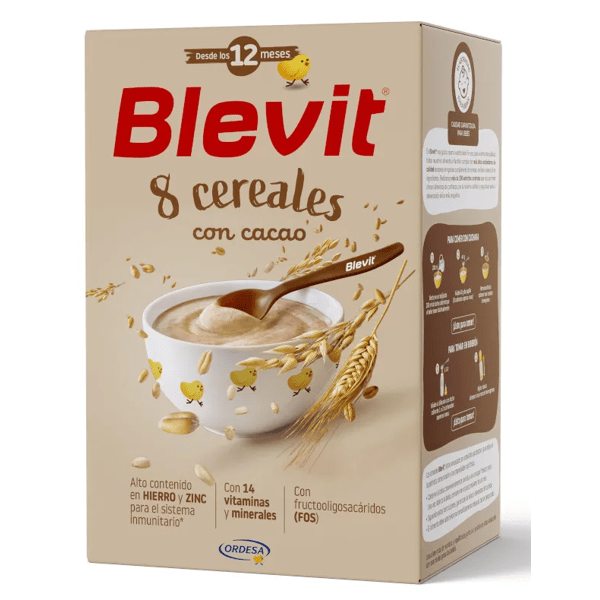 Blevit 8 Cereals with cocoa is a complete nutritional option for babies from 12 months onwards .