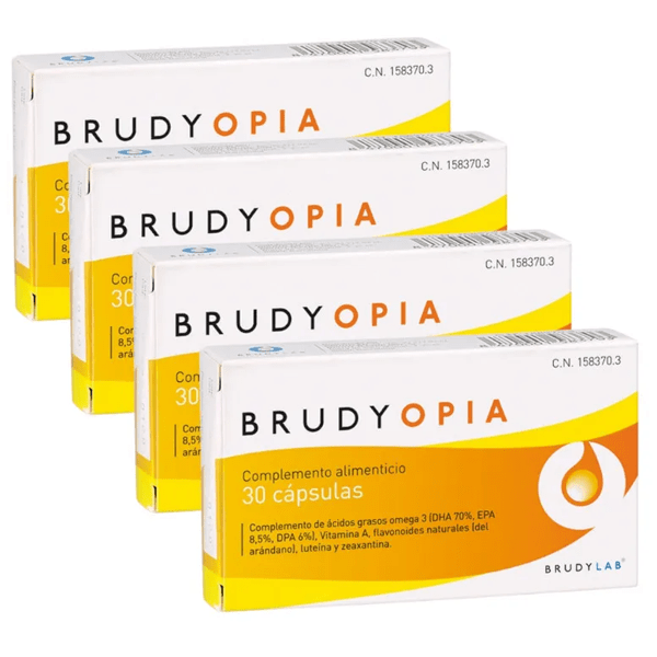 https://www.mifarma.eu/brudy-opia-4x30-capsules713906461785Brudy Opia 4x30 Capsules<p><strong>Brudy Opia 4x30 Capsules</strong></p><p> <span style="font-weight: bold;">Brudy 4-box Savings Pack</span> optimizes vision and acuity in <strong>myopia</strong> , opposing its progression.</p><p> It contributes to the maintenance of normal <strong>vision</strong> .</p><p> Docosahexaenoic acid (DHA) is an omega-3 polyunsaturated fatty acid that constitutes an important part of the structure of the retina and, therefore, plays a role in visual development and normal eye function.</p><p> Vitamin A contributes to normal cell differentiation and the maintenance of normal vision.</p><p> The polyphenols contained in this product help prevent oxidative tissue damage.</p><p> Lutein, along with Zeaxanthin, actively accumulates in the healthy macula to achieve the highest concentration of carotenoids in the human body, to protect the eye from the effects caused by visible light.</p><p> Suitable for celiacs and lactose intolerant people.</p><p> If you would like more information about this product, you can download the following document.</p>https://assets.atida.com/transform/746b2734-1d10-45cc-b79f-1f7ce388f658/Brudy-Opia-4x30-Capsulas?io=transform:extend,width:250,height:25024instock120.6421.8181808181828096.64Brudylabhttps://www.mifarma.eu/media/catalog/product/0/2/6/0/026068d91c0dc939d7f5fce3f4b89614f6b2414d_Brudy_Opia_4x30_Capsulas.png/Mini Prices/Health and Hygiene/Optics/Eye Vitamins/Savings Packs/Vitamins and Supplements Packs/Savings Packs/Health and Hygiene/Health and Hygiene/Optics2026-02-17T01:11:26+0000