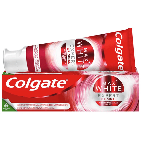 </p><p>Does not damage enamel and leaves breath fresh.</p> https://assets.atida.com/transform/33ff7f4d-3083-4227-8dc9-1530a0adc522/Colgate-Pasta-de-Dientes-Max-White-Expert-Original-75-ml?io=transform:extend,width:250,height:250 3.99 instock 5.25 3.297519661157 24 1.26 Colgate https://www.mifarma.eu/media/catalog/product/b/f/b/8/bfb8aa96f873f9c38ab0423e90464fee909a6ae5_Colgate_Pasta_de_Dientes_Max_White_Expert_Original_75_ml.png /Health and Hygiene/Dental and Oral Care/Toothpaste /Health and Hygiene /Health and Hygiene/Dental and Oral Care /Up to 70% off 2024-09-16T07:00:28+0000