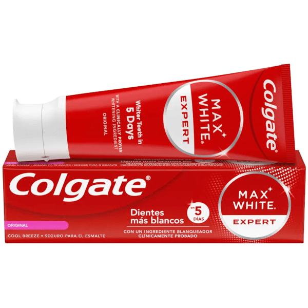 </p><p>Does not damage enamel and leaves breath fresh.</p> https://assets.atida.com/transform/def3cca9-2a8c-48e2-90df-3e19900cdba5/Colgate-Pasta-de-Dientes-Max-White-Expert-Original-75-ml?io=transform:extend,width:250,height:250 3.99 instock 5.25 3.297519661157 24 1.26 Colgate https://www.mifarma.eu/media/catalog/product/2/3/d/5/23d5e69c856dfad0c41e1b514d4a0984e6e44888_Colgate_Pasta_de_Dientes_Max_White_Expert_Original_75_ml.png /Health and Hygiene/Dental and Oral Care/Toothpaste /Health and Hygiene /Health and Hygiene/Dental and Oral Care /Up to 70% off 2024-09-16T07:00:28+0000