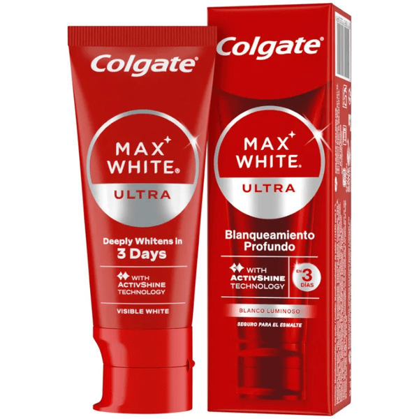 https://www.mifarma.eu/colgate-max-white-ultra-active-foam-whitening-toothpaste-50ml 497159800845 Colgate Max White Ultra Active Foam Whitening Toothpaste 50ml <p><span>Whitening toothpaste</span> with a rich, warm foam containing millions of <span>active oxygen</span> molecules.</p><p> These smart molecules detect and remove both <span>surface</span> and <span>deep stains</span> for whiter teeth in just 3 days*.</p><p> Clinically proven.</p><p> This toothpaste is non-abrasive and <span>safe for your enamel</span> .</p><p> Enjoy a bright white smile with Colgate!</p><p> *Stains caused by food and drink.</p> https://assets.atida.com/transform/82a7b545-34fc-4c58-b571-8810f6ce09af/Colgate-Pasta-de-Dientes-Max-White-Ultra-Active-Foam-Blanqueadora-50-ml?io=transform:extend,width:250,height:250 4.99 instock 5.42 4.1239659421488 8 0.43 Colgate https://www.mifarma.eu/media/catalog/product/9/2/d/c/92dcc81fa3965cafedc8ade37587b37abb5fc1dc_Colgate_Pasta_de_Dientes_Max_White_Ultra_Active_Foam_Blanqueadora_50_ml.png /Health and Hygiene/Dental and Oral Care/Toothpaste /Health and Hygiene /Health and Hygiene/Dental and Oral Care /Up to 70% off 2024-09-16T05:59:52+0000