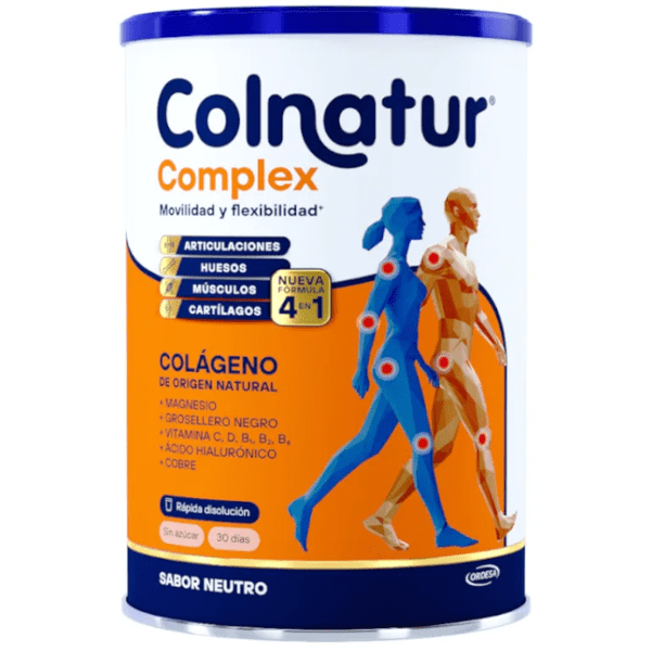 https://www.mifarma.eu/colnatur-complex-very-neutral-flavor-330-g-container903589501643Colnatur Complex Neutral Mobility and Flexibility 324 gr<p><span style="font-weight: bold;">Colnatur Complex Neutral Mobility and Flexibility 324 gr</span></p><p> <span style="font-weight: bold;">Colnatur Complex Neutro</span> is a fast-dissolving powder supplement designed to <span style="font-weight: bold;">promote joint mobility and flexibility, and to care for bones, muscles, and cartilage.</span></p><p> It contains <span style="font-weight: bold;">10g of pure hydrolyzed collagen of natural origin</span> , combined with <span style="font-weight: bold;">magnesium bisglycinate, hyaluronic acid, vitamins C, B1, B2, B6, D, copper and blackcurrant extract.</span></p><p> This 4-in-1 formula is backed by over 20 years of collagen research and has shown proven results in clinical studies.</p><p> It is indicated for people who want <span style="font-weight: bold;">to take care of their bones and muscles, maintain joint mobility and flexibility, as well as for athletes and people with habitual fatigue or physical/mental stress.</span></p><p> It is used to contribute to the maintenance and self-care of joint health.</p>https://assets.atida.com/transform/2d47cdc4-7060-430f-8b02-ea4f8e14668b/Colnatur-Complex-Neutro-Movilidad-y-Flexibilidad-324-gr?io=transform:extend,width:250,height:25018.99instock20.2617.26363536363661.27Colnaturhttps://www.mifarma.eu/media/catalog/product/4/f/8/9/4f893aca1127b7797f7748d4fea652893a32b749_Colnatur_Complex_Neutro_Movilidad_y_Flexibilidad_324_gr.png/Vitamins and Supplements/Supplements/Bones, Joints, and Muscles/Mini Prices/Vitamins and Supplements/Vitamins and Supplements/Supplements/cyber_monday_pt_int/NO MIFARMA DAYS/Up to 70% off/Mifarma Days NO/Singles' Day: Up to 70% off!2024-09-16T06:22:54+0000