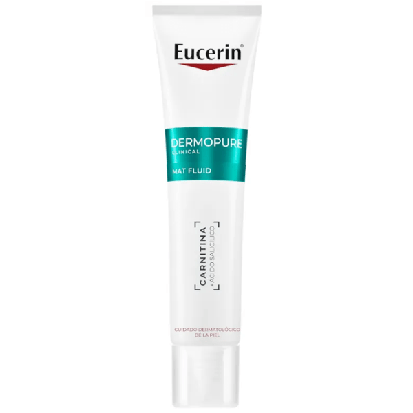 https://www.mifarma.eu/dermopure-hydrating-fluid-matifying-eucerin-50ml859877942100Eucerin DermoPure Clinical Mat Fluid 40 ml<p><span style="font-weight: 700;">Eucerin DermoPure Clinical Mat Fluid 40 ml</span></p><p> Get an 8h mattifying effect and refined, flawless skin with <span style="font-weight: bold;">Eucerin</span> 's mattifying facial <span style="font-weight: bold;">fluid</span> :</p><ul style="list-style: inside"><li> Formulated for <span style="font-weight: bold;">oily skin</span> with blemishes.</li><li> It acts on <span style="font-weight: bold;">pimples</span> and <span style="font-weight: bold;">blackheads</span> , and controls <span style="font-weight: bold;">acne</span> .</li><li> Enriched with <span style="font-weight: bold;">salicylic acid</span> and licochalcone.</li><li> Regulates sebum production thanks to its innovative technology.</li><li> Suitable for <span style="font-weight: bold;">sensitive skin</span> .</li></ul><p> This innovative <span style="font-weight: bold;">mattifying cream</span> from <span style="font-weight: bold;">Eucerin</span> eliminates imperfections and prevents their reappearance, leaving skin clear and refined.</p><p> Thanks to the combination of salicylic acid, a comedolytic acid, and licochalcone A, which calms the skin, the <span style="font-weight: bold;">mattifying fluid</span> targets <span style="font-weight: bold;">blackheads</span> and <span style="font-weight: bold;">spots</span> while soothing irritation in sensitive skin and reducing redness.</p><p> According to a study of 360 women, between 98 and 100% of participants reported that, after four weeks, their expression lines were reduced and the skin around their eyes looked rejuvenated.</p><p> <span style="font-weight: bold;">MAIN FEATURES</span></p><p> - 8-hour anti-shine effect.</p><p> - Reduces impurities and refines the skin.</p><p> - Prevents excessive sebum production.</p><p> - Suitable for day and night care.</p><p> - Antibacterial, non-comedogenic, non-greasy.</p>https://assets.atida.com/transform/b0293341-b067-4759-bc8d-784e2c3c14d7/Eucerin-DermoPure-Clinical-Mat-Fluid-40-ml?io=transform:extend,width:250,height:25017.99instock23.3214.867767595041235.33Eucerinhttps://www.mifarma.eu/media/catalog/product/6/4/d/5/64d559ee401dc225722224b64bf12755293e0c0e_Eucerin_DermoPure_Clinical_Mat_Fluid_40_ml.png/Atida Cash 5%/Cosmetics and Beauty/Cosmetics and Beauty/Facial/Cosmetics and Beauty/Facial/Acne/Mini Prices/cyber_monday_pt_int/Up to 70% off/NO MIFARMA DAYS/Singles' Day: Up to 70% off!2024-09-16T06:20:36+0000