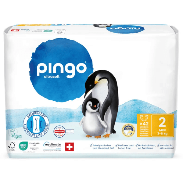Size 2 of the new Pingo is designed for babies between 3 and 6 kg. This diaper combines superior technical performance with softness and sustainability, offering effective protection both day and night.