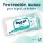 Thanks to its composition from 100% vegetable fibers and cotton of the highest quality , free of alcohol and perfumes , you protect the pure essence of your baby's skin, keeping their smile radiant.