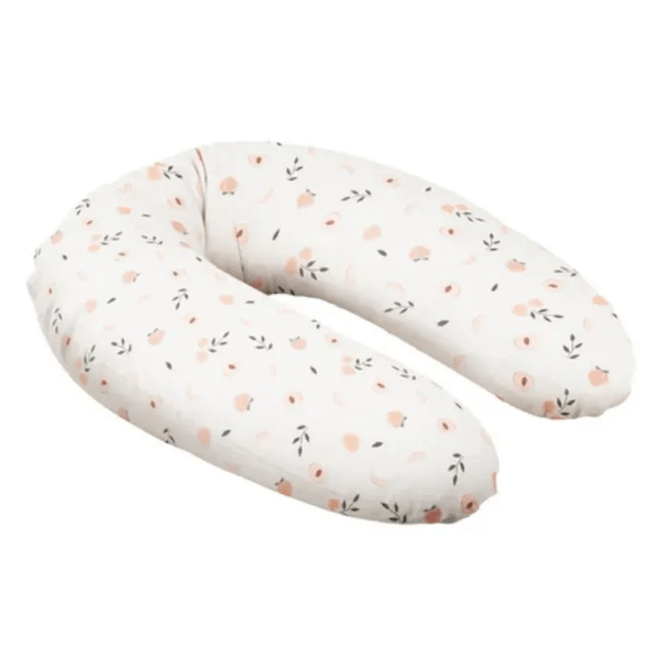 The Doomoo Buddy maternity pillow with a pretty peach print is the most versatile rest accessory for expectant mothers.