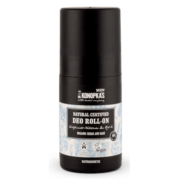 Dr. Konopka's Natural Roll-On Deodorant is made with carefully selected natural ingredients , including organic essential oils ofcedarwood , known for its antibacterial properties, and sage, which helps regulate perspiration.