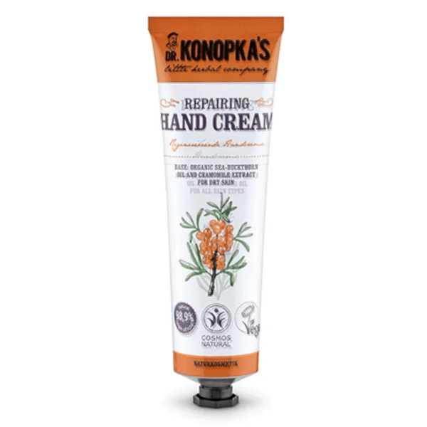 Dr. Konopka's Repairing Hand Cream is a natural treatment specially formulated for dry and delicate skin . Its formula combines carefully selected organic ingredients, such as sea buckthorn, known for its nourishing and moisturizing properties , which help restore skin elasticity and promote cell regeneration, leaving hands softer and healthier.