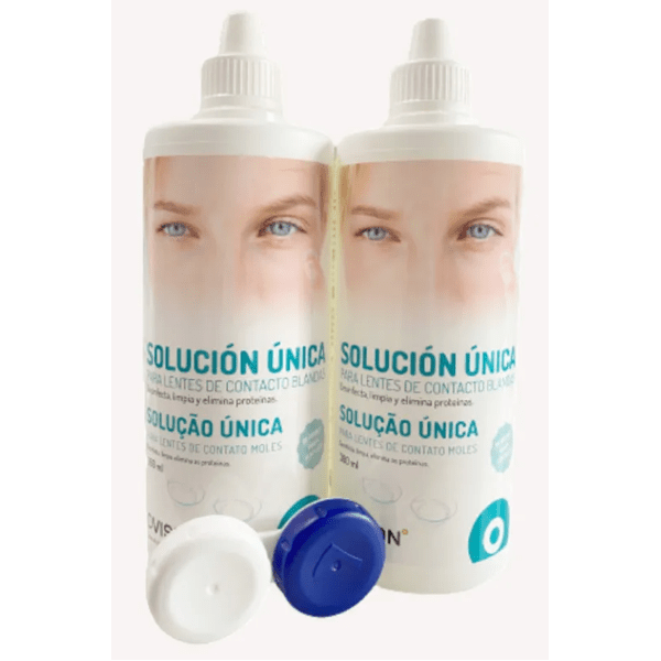 The unique Dvision solution in a pack of two 360 ml bottles is presented as a complete and effective option for the care of soft contact lenses.