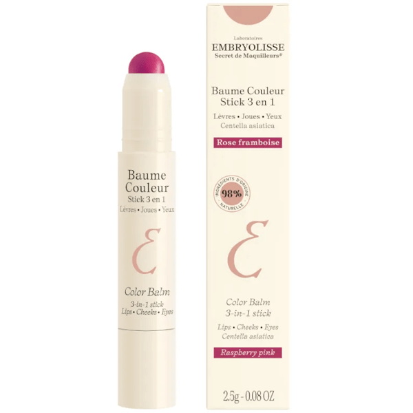 https://www.mifarma.eu/embryolisse-baume-couleur-stick-3-in-1-framboise-2-5-gr198095075437Embryolisse Baume Couleur Stick 3-in-1 Framboise 2.5 gr<p><span style="font-weight: bold;">Embryolisse Baume Couleur Stick 3-in-1 Framboise 2.5 gr</span></p><p> Raspberry pink color that brings a fresh and natural touch.</p><div><p> <span style="font-weight: bold;">BENEFITS</span></p><p> - Its higher concentration of pigment guarantees a uniform and perfectly defined color that lasts a long time.</p><p> - Satin finish.</p><p> - 98% natural ingredients.</p><p> - It also takes care of the lips, preventing dryness thanks to its formula enriched with ingredients such as Aloe Vera, which is known for its moisturizing and repairing properties, and Centella Asiatica, which helps to soothe and protect the skin.</p><p> - In addition, its creamy and buildable texture allows you to create anything from a subtle look to a more intense finish, adapting to different occasions and preferences.</p><p> - It can be applied not only to the <span style="font-weight: bold;">lips</span> , but also to the <span style="font-weight: bold;">cheekbones</span> and <span style="font-weight: bold;">eyes.</span></p></div>https://assets.atida.com/transform/8a82dd8c-7354-408d-9f4e-8efa213d4051/Embryolisse-Baume-Couleur-Stick-3-en-1-Framboise-2-5-gr?io=transform:extend,width:250,height:25014.99instock19.912.388428752066254.91Embryolissehttps://www.mifarma.eu/media/catalog/product/f/a/9/3/fa9339b474b1b0a61518062ca8741bcaf851057f_Embryolisse_Baume_Couleur_Stick_3_en_1_Framboise_2_5_gr.png/Cosmetics and Beauty/Cosmetics and Beauty/Facial/Cosmetics and Beauty/Facial/Lips/Cosmetics and Beauty/Facial/Make-up/Cosmetics and Beauty/Eyes2025-12-11T00:48:39+0000