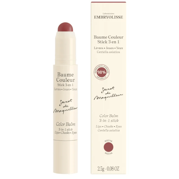 https://www.mifarma.eu/embryolisse-baume-couleur-stick-3-in-1-mocha-2-5-gr247914823112Embryolisse Baume Couleur Stick 3-in-1 Mocha 2.5 gr<p><span style="font-weight: bold;">Embryolisse Baume Couleur Stick 3-in-1 Mocha 2.5 gr</span></p><p> Warm 'milk chocolate' tone that provides a natural shine.</p><p> <span style="font-weight: bold;">BENEFITS</span></p><p> - Its higher concentration of pigment guarantees a uniform and perfectly defined color that lasts a long time.</p><p> - Satin finish.</p><p> - 98% natural ingredients.</p><p> - It also takes care of the lips, preventing dryness thanks to its formula enriched with ingredients such as Aloe Vera, which is known for its moisturizing and repairing properties, and Centella Asiatica, which helps to soothe and protect the skin.</p><p> - In addition, its creamy and buildable texture allows you to create anything from a subtle look to a more intense finish, adapting to different occasions and preferences.</p><p> - It can be applied not only to the <span style="font-weight: bold;">lips</span> , but also to the <span style="font-weight: bold;">cheekbones</span> and <span style="font-weight: bold;">eyes.</span></p>https://assets.atida.com/transform/1eb77574-7d71-44a8-b412-1183267ce68b/Embryolisse-Baume-Couleur-Stick-3-en-1-Mocha-2-5-gr?io=transform:extend,width:250,height:25014.99instock19.912.388428752066254.91Embryolissehttps://www.mifarma.eu/media/catalog/product/0/c/f/e/0cfe6a799a8d67f8c491c5a6c538a7c84e262328_Embryolisse_Baume_Couleur_Stick_3_en_1_Mocha_2_5_gr.png/Cosmetics and Beauty/Cosmetics and Beauty/Facial/Cosmetics and Beauty/Facial/Lips/Cosmetics and Beauty/Facial/Make-up/Cosmetics and Beauty/Eyes2025-12-11T00:50:35+0000