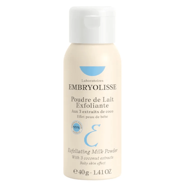 https://www.mifarma.eu/embryolisse-exfoliating-milk-powder-40-gr715905601507Embryolisse Exfoliating Milk Powder 40 gr<p><span style="font-weight: bold;">Embryolisse Exfoliating Milk Powder 40 gr</span></p><p> Discover the secret to radiant, soft skin with <span style="font-weight: bold;">Exfoliating Milk Powder</span> , a jewel of cosmetic science that makes the most of the natural benefits of coconut.</p><p> <span style="font-weight: bold;">BENEFITS</span></p><p> - Meticulously designed to care for even the most sensitive skin, this Embryolisse product offers <span style="font-weight: bold;">gentle yet effective exfoliation</span> , removing impurities and dead cells to reveal a fresh, rejuvenated complexion.</p><p> - The unique formula combines three powerful coconut extracts: the pulp, which tones and beautifies the skin leaving it with a captivating aroma; the shell, whose natural exfoliating properties promote cell renewal without damaging the skin; and the milk powder, which when mixed with water, softens the skin.</p><p> - Not only does it improve the texture of your skin, but it also prepares it to better absorb other care products, optimizing your beauty routine.</p><p> - Suitable for all skin types.</p>https://assets.atida.com/transform/67a9ede7-fcac-42a1-bc20-0737c1219dc9/Embryolisse-Exfoliating-Milk-Powder-40-gr?io=transform:extend,width:250,height:25017.99instock2314.867767595041225.01Embryolissehttps://www.mifarma.eu/media/catalog/product/5/7/0/7/5707ce00b7963e6b15bf967d9981c5fab209402d_Embryolisse_Exfoliating_Milk_Powder_40_gr.png/Cosmetics and Beauty/Cosmetics and Beauty/Facial/Cosmetics and Beauty/Facial/Exfoliants/Up to 70% off/NO MIFARMA DAYS/Mifarma Days NO/Singles' Day: Up to 70% off!/Atida Cash 5%2025-02-07T00:42:40+0000