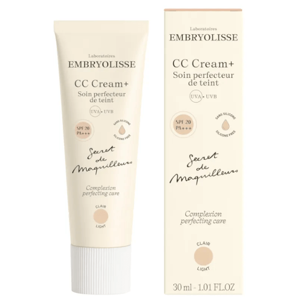 https://www.mifarma.eu/embryolisse-soin-perfecteur-de-teint-cc-cream-light-30-ml364027274364Embryolisse Soin Perfecteur de Teint-CC Cream+ Light 30 ml<p><span style="font-weight: bold;">Embryolisse Soin Perfecteur de Teint-CC Cream+ Light 30 ml</span></p><p> The <span style="font-weight: bold;">6-in-1 complexion perfector with SPF 20 PA+++</span> combines multiple benefits in one step.</p><p> <span style="font-weight: bold;">BENEFITS</span></p><p> - With its <span style="font-weight: bold;">vegan and non-comedogenic formula</span> , it is specifically designed to suit the needs of sensitive skin.</p><p> - This CC cream stands out for its ability to hydrate, smooth, plump, even out and brighten the skin, achieving a <span style="font-weight: bold;">natural and long-lasting finish</span> .</p><p> - The key to its effectiveness lies in the fusion of high affinity pigments that are carried with lecithin, allowing the product to blend perfectly with the skin tone.</p><p> - In addition, active treatment ingredients such as hyaluronic acid provide deep hydration, while mandarin extract adds a touch of radiance, helping to smooth the skin's texture.</p><p> - The velvety, lightweight texture allows for coverage that feels like a second skin, ideal for those looking for a finish without a mask-like effect.</p><p> - 94% of ingredients of natural origin.</p><p> - <span style="font-weight: bold;">Efficacy results</span> : 97% fuller, more supple and smoother skin; 100% more protected skin. 100% imperfections corrected instantly; 97% ultra-natural effect.</p>https://assets.atida.com/transform/71586a53-61df-4f01-8526-07927938b910/Embryolisse-Soin-Prefecteur-de-Teint-CC-Cream-Light-30-ml?io=transform:extend,width:250,height:25021.99instock2818.173552719008216.01Embryolissehttps://www.mifarma.eu/media/catalog/product/4/a/7/a/4a7a9130bf41fb4f3631c15e750bd5c54f766379_Embryolisse_Soin_Prefecteur_de_Teint_CC_Cream_Light_30_ml.png/Cosmetics and Beauty/Cosmetics and Beauty/Facial/Cosmetics and Beauty/Facial/Make-up2025-12-11T00:54:56+0000