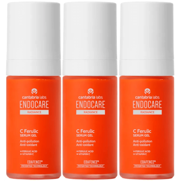 https://www.mifarma.eu/endocare-radiance-c-ferulic-serum-gel-3x30-ml323629192458Endocare Radiance C Ferulic Serum Gel 3x30 ml<p><span style="font-weight: bold;">Endocare Radiance C Ferulic Serum Gel 3x30 ml</span></p><p> Facial serum that protects and repairs <span style="font-weight: bold;">aging</span> caused by environmental stress and specifically protects against <strong>pollution</strong> .</p><p> <span style="font-weight: bold;">BENEFITS</span></p><p> - Formula that combines <span style="font-weight: bold;">Edafence®</span> , innovative anti-pollution technology, with a complex of antioxidant and repairing activity.</p><p> - In addition, its complete antioxidant formula includes <span style="font-weight: bold;">5% pure vitamin C</span> and <span style="font-weight: bold;">0.5% ferulic acid</span> .</p><p> <span style="font-weight: bold;">- Anti-pollution effectiveness</span> against urban pollutants, tobacco smoke, heavy metals, free radicals and <strong>blue light</strong> from screens.</p><p> - Improves the skin's barrier function, protecting it from daily external aggressions.</p><p></p><p> - <strong>Non-comedogenic</strong> formula.</p><p> - Fast-absorbing gel texture that does not leave a greasy feeling on the skin.</p>https://assets.atida.com/transform/ae745a2f-afa9-4fa3-9683-131dca782fc0/Endocare-Radiance-C-Ferulic-Serum-Gel-3x30-ml?io=transform:extend,width:250,height:250109.99instock238.2990.90082544628154128.3Cantabria Labshttps://www.mifarma.eu/media/catalog/product/e/5/5/3/e553887f647f3222ca875f1b81217e1046ad5fec_Endocare_Radiance_C_Ferulic_Serum_Gel_3x30_ml.png/Cosmetics and Beauty/Cosmetics and Beauty/Facial/Cosmetics and Beauty/Facial/Serum/Mini Prices/Savings Packs/Cosmetics and Beauty Packs/Savings Packs/NO MIFARMA DAYS/Mifarma Days: Up to 70% off!/Mifarma Days NO2025-11-13T00:53:49+0000