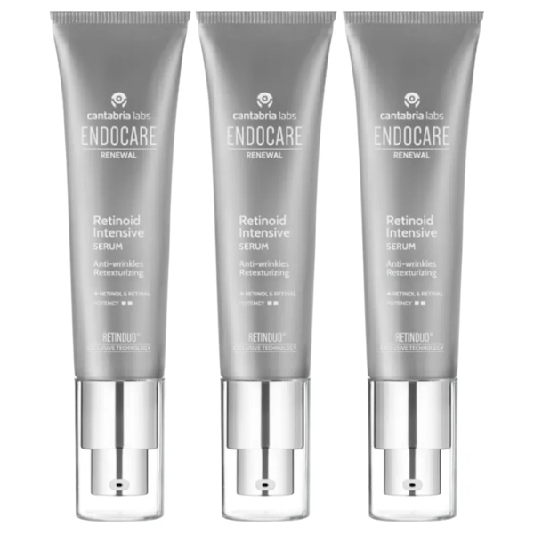 https://www.mifarma.eu/endocare-renewal-retinoid-intensive-serum-3x30-ml621866750960Endocare Renewal Retinoid Intensive Serum 3x30 ml<p><span style="font-weight: bold;">Endocare Renewal Retinoid Intensive Serum 3x30 ml</span></p><p> This intensive renewing, <span style="font-weight: bold;">anti-wrinkle</span> and retexturizing treatment is designed to deliver visible results in the fight against the signs of aging.</p><p> <span style="font-weight: bold;">BENEFITS</span></p><p> - With a formulation that includes <span style="font-weight: bold;">Pure Retinol</span> and <span style="font-weight: bold;">Retinal</span> , this serum benefits from the innovative <span style="font-weight: bold;">RetinDuo® Technology</span> , which encapsulates retinol in microsponges and retinal in nanovesicles, guaranteeing an effective and prolonged release of its active ingredients.</p><p> - This unique combination allows for intensive epidermal retexturization and renewal, resulting in smoother, more even skin.</p><p> - Helps reduce wrinkles and expression lines, improves skin texture and evens out skin tone.</p><p> - Its light and silky texture ensures rapid absorption.</p><p> - This serum is especially recommended for skin that is already accustomed to the use of retinoids, providing an intensive treatment that noticeably improves the signs of overall skin aging, including deep wrinkles and uneven texture.</p><p> - Non-comedogenic.</p><p> - Tested under dermatological control.</p>https://assets.atida.com/transform/0bb9f9e6-0a9a-4232-87c2-edcb8b07415b/Endocare-Renewal-Retinoid-Intensive-Serum-3x30-ml?io=transform:extend,width:250,height:250144.99instock187.89119.826445280992342.9Cantabria Labshttps://www.mifarma.eu/media/catalog/product/f/0/c/4/f0c49b618ac652a7ef159c04ab82f5138e8e2225_Endocare_Renewal_Retinoid_Intensive_Serum_3x30_ml.png/Cosmetics and Beauty/Cosmetics and Beauty/Facial/Cosmetics and Beauty/Facial/Serum/Mini Prices/Savings Packs/Cosmetics and Beauty Packs/Savings Packs/NO MIFARMA DAYS/Mifarma Days: Up to 70% off!/Mifarma Days NO2025-11-13T01:07:18+0000