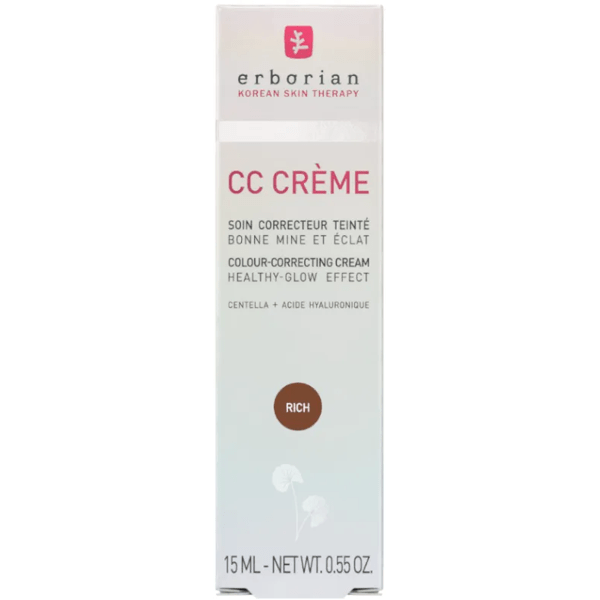 https://www.mifarma.eu/erborian-cc-creme-rich-15-ml856461828021Erborian CC Crème Rich 15 ml<p><span style="font-weight: 700;">Erborian CC Crème Rich 15 ml</span></p><p> <span style="font-weight: bold;">CC Crème</span> is an innovative Korean <span style="font-weight: bold;">skincare</span> cream that combines science and beauty into one product.</p><p> Its unique formula, composed of <span style="font-weight: bold;">encapsulated pigments</span> , <span style="font-weight: bold;">blends</span> exceptionally well <span style="font-weight: bold;">with the skin,</span> offering <span style="font-weight: bold;">light coverage</span> that <span style="font-weight: bold;">evens out skin tone and provides a natural, radiant finish.</span></p><p> This cream not only beautifies, but also deeply cares for the skin.</p><p> Enriched with <span style="font-weight: bold;">hyaluronic acid</span> , CC Crème provides <span style="font-weight: bold;">immediate and long-lasting hydration</span> , keeping skin moisturized for up to 24 hours. This powerful ingredient is known for its ability to <span style="font-weight: bold;">attract and retain moisture</span> , contributing to <span style="font-weight: bold;">softer, more supple skin</span> .</p><p> In addition, it contains <span style="font-weight: bold;">2% Centella Asiatica</span> , an ingredient valued in Asian cosmetics for its <span style="font-weight: bold;">regenerative properties</span> , which helps <span style="font-weight: bold;">improve skin texture and soothe irritations</span> , promoting a <span style="font-weight: bold;">healthier and more rejuvenated appearance.</span></p><p> Daily use of CC Cream can visibly transform your skin in as little as 28 days, revealing a more beautiful and radiant complexion.</p><p> <span style="font-weight: bold;">Tone: rich.</span></p>https://assets.atida.com/transform/5a3fa2ea-9c2e-4f88-b673-fb281b0ae682/CC-Creme-Rich-15-ml?io=transform:extend,width:250,height:25016.99outofstock22.914.04132131405265.91Erborianhttps://www.mifarma.eu/media/catalog/product/2/5/0/d/250d36c95ee0a7f0023cec20ad3291e5c4ac3400_CC_Creme_Rich_15_ml.png/Cosmetics and Beauty/Cosmetics and Beauty/Cosmetics/Cosmetics and Beauty/Cosmetics/Face/Singles' Day: Up to 70% off!2025-10-24T00:12:07+0000