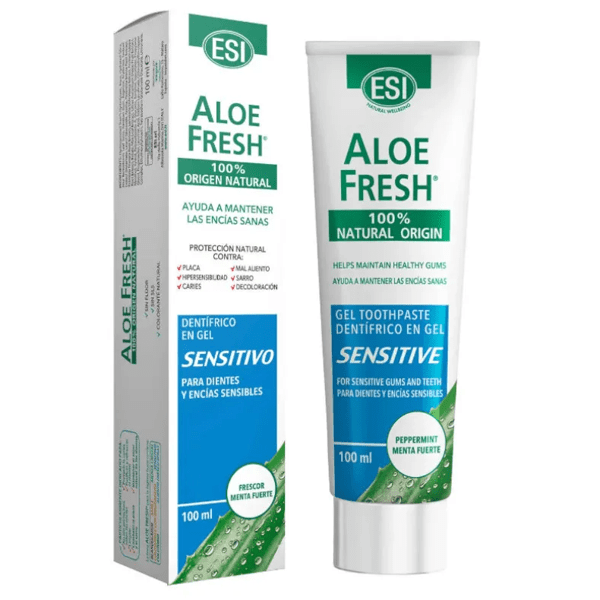 https://www.mifarma.eu/esi-aloe-fresh-sensitive-gel-toothpaste-100-ml217789160404ESI Aloe Fresh Sensitive Gel Toothpaste 100 ml<p><span style="font-weight: bold;">ESI Aloe Fresh Sensitive Gel Toothpaste 100 ml</span></p><p> This <span style="font-weight: bold;">naturally sourced, fluoride-free gel toothpaste</span> is specifically designed to provide <span style="font-weight: bold;">exceptional care for sensitive teeth and gums</span> .</p><p> Its unique formula includes a selection of <span style="font-weight: bold;">active natural ingredients</span> that work synergistically to strengthen and protect oral health. Among its key components <span style="font-weight: bold;">are plant and mineral extracts that not only clean effectively but also help reduce tooth sensitivity</span> , providing long-lasting relief and a more comfortable brushing experience.</p><p> <span style="font-weight: bold;">The gel texture allows for more effective application</span> , enabling the product to adhere better to the tooth surface and ensuring a thorough clean. Furthermore, its <span style="font-weight: bold;">refreshing flavor</span> not only provides a long-lasting feeling of freshness but also encourages maintaining a daily oral hygiene routine.</p><p> The use of natural products in oral hygiene is on the rise, as many consumers seek alternatives that are gentle on the body and the environment.</p><p> This toothpaste aligns perfectly with this trend, offering an effective and natural option for those who suffer from tooth sensitivity, without compromising oral health or the effectiveness of oral care.</p>https://assets.atida.com/transform/69456cde-0e13-4b61-93a0-7cf555c08ebc/ESI-Aloe-Fresh-Dentifrico-en-Gel-Sensitivo-100-ml?io=transform:extend,width:250,height:2504.99instock6.754.1239659421488261.76ESIhttps://www.mifarma.eu/media/catalog/product/7/8/0/4/7804a9b987c0423667fc1eb6ff11c3e4a8619ec6_ESI_Aloe_Fresh_Dentifrico_en_Gel_Sensitivo_100_ml.png/Health and Hygiene/Dental and Oral Care/Toothpaste/Health and Hygiene/Health and Hygiene/Dental and Oral Care2025-12-25T00:48:36+0000