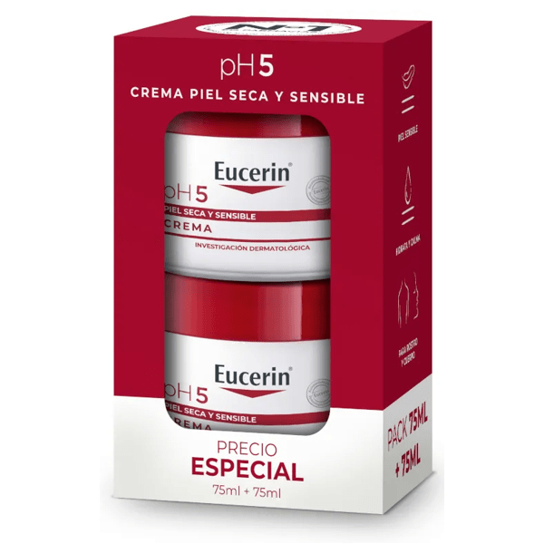 https://www.mifarma.eu/eucerin-ph5-body-cream-2x75-ml407251062838Eucerin pH5 Body Cream 2x75 ml<p><span style="font-weight: bold;">Eucerin pH5 Body Cream 2x75 ml</span></p><p> Moisturizing cream indicated for the intensive care of <strong>sensitive and dry skin.</strong></p><p> <strong>BENEFITS</strong></p><p> - Protects the skin from cold and occasional dryness.</p><p> - Thanks to its innovative EnzymeProtection formula, it maintains the balance of the protective acid mantle, protecting and activating the skin's natural defenses from within.</p><p> - Applicable in specific areas such as elbows, knees and skin.</p><p> - Suitable for babies and children.</p><p> - Dermatological emulsion (O/W). With 3% Dexpanthenol as a skin regenerator, 1% pure Vitamin E and citrate buffer.</p><p> <strong>WHO IS IT SUITABLE FOR?</strong></p><p> Especially recommended for hydrating <strong>dry and sensitive skin.</strong></p>https://assets.atida.com/transform/92127912-8bc7-40ba-87fe-1efb3dda82ed/Eucerin-pH5-Crema-Corporal-2x75-ml?io=transform:extend,width:250,height:25019.99instock23.4416.520660157025153.45Eucerinhttps://www.mifarma.eu/media/catalog/product/b/1/f/5/b1f5f55d493d57ea2eb36b7c460a66437214c6e9_Eucerin_pH5_Crema_Corporal_2x75_ml.png/Cosmetics and Beauty/Cosmetics and Beauty/Body/Cosmetics and Beauty/Body/Moisturizers2025-03-12T00:41:39+0000