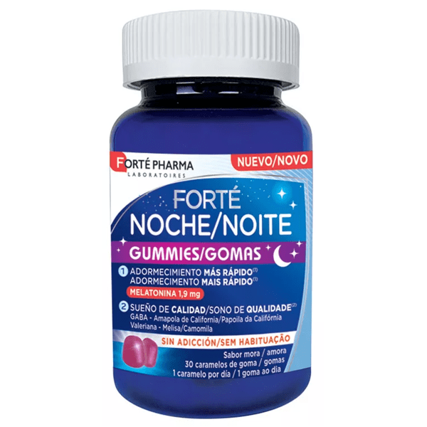 https://www.mifarma.eu/forte-pharma-forte-night-30-gummies434846623818Forté Pharma Forte Night 30 Gummies<p>If you have trouble falling asleep, suffer from insomnia or wake up in the middle of the night, these delicious blackberry-flavored gummy candies will help you rest better.</p><p>Its formula with melatonin, GABA , California poppy, valerian, lemon balm and lime blossom reduce the time needed to fall asleep and promote a restful rest.</p><p>In addition, California poppy helps reduce nighttime awakenings.</p>https://assets.atida.com/transform/3c59d5f1-b7a4-487d-ae83-9866bf433d0d/Forte-Pharma-Forte-Noche-30-Gominolas?io=transform:extend,width:250,height:2508.99instock11.998.1727262727273253Forté Pharmahttps://www.mifarma.eu/media/catalog/product/8/3/4/3/8343d8a7aa1fb2986709c75fb757aef254451af3_Product_Tile_Thumbnail_Forte_Pharma_Forte_Noche_30_Gominolas.png/Atida Cash 5%/Vitamins and Supplements/Supplements/Sleep/Vitamins and Supplements/Vitamins and Supplements/Supplements/cyber_monday_pt_int/NO MIFARMA DAYS/Up to 70% off/Mifarma Days NO/Singles' Day: Up to 70% off!2024-09-16T05:57:01+0000