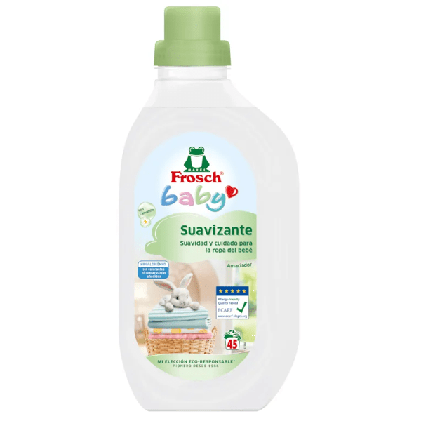 https://www.mifarma.eu/frosch-baby-ecological-concentrated-liquid-fabric-softener-for-baby-clothes-900-ml841399134927Frosch Baby Ecological Concentrated Liquid Fabric Softener for Baby Clothes 900 ml<p><span style="font-size: 13px; font-weight: bold;">Frosch Baby Ecological Concentrated Liquid Fabric Softener for Baby Clothes 900 ml</span></p><p> <span style="font-weight: bold;">Frosch Baby</span> is presented as an effective and environmentally friendly solution for <span style="font-weight: bold;">caring for little ones' clothes.</span></p><p> This <span style="font-weight: bold;">concentrated fabric softener</span> is specially formulated for <span style="font-weight: bold;">babies and children with sensitive skin,</span> providing a washing experience that not only cleans, but also <span style="font-weight: bold;">cares for and protects children's delicate skin.</span></p><p> Its <span style="font-weight: bold;">eco-friendly design</span> meets high <span style="font-weight: bold;">sustainability standards,</span> contributing to a cleaner, healthier future.</p><p> Frosch Baby's formula includes <span style="font-weight: bold;">natural chamomile extracts,</span> an ingredient valued since ancient times for its <span style="font-weight: bold;">soothing and anti-inflammatory properties</span> . Chamomile not only <span style="font-weight: bold;">helps soften clothes</span> but also acts as a <span style="font-weight: bold;">protective shield against potential skin irritations.</span></p><p> This fabric softener is ideal for those looking for a <span style="font-weight: bold;">product that does not compromise the health of the skin or the environment</span> .</p><p> Plus, Frosch Baby is completely <span style="font-weight: bold;">microplastic-free</span> , meaning it doesn't contribute to ocean and aquatic ecosystem pollution. Since <span style="font-weight: bold;">it's free of dyes and preservatives,</span> it's a safe option that provides peace of mind for parents who are conscious of what they're using when caring for their children.</p><p> The product has been <span style="font-weight: bold;">dermatologically tested and is EU Ecolabel certified,</span> a distinction that guarantees its effectiveness and safety. This ensures that each wash not only leaves baby clothes <span style="font-weight: bold;">soft to the touch but also offers a fresh and pleasant scent,</span> making dressing little ones even more enjoyable.</p><p> Frosch Baby is, without a doubt, a smart choice for those who value the well-being of their children and the care of the planet.</p>https://assets.atida.com/transform/fc148c90-f566-4873-a743-999d890706ca/Frosch-Baby-Ecologico-Suavizante-Concentrado-Liquido-Lavadora-Ropa-Bebe-900-ml?io=transform:extend,width:250,height:2503.49instock4.22.8842965206612170.71Froschhttps://www.mifarma.eu/media/catalog/product/d/d/d/2/ddd20d52892ac4d5e6152cb243ba3b6902888730_Frosch_Baby_Ecologico_Suavizante_Concentrado_Liquido_Lavadora_Ropa_Bebe_900_ml.png/Baby and Mom/Baby and Mom/Care/Health and Hygiene/Home/Detergents and Softeners/Health and Hygiene/Health and Hygiene/Home2025-09-26T00:09:18+0000
