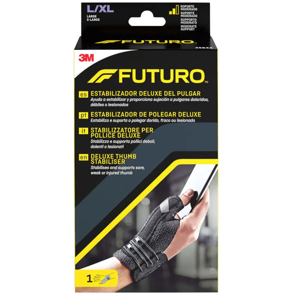 https://www.mifarma.eu/future-wristband-thumb-rhizarthrosis-black-l-xl-1-unit682188885782Future Wristband Thumb Rhizarthrosis Black L/Xl 1 unit<p><span style="font-weight: bold;">Future Wristband Thumb Rhizarthrosis Black L/Xl 1 unit</span></p><p> This product has been specifically developed to <span style="font-weight: bold;">provide effective support to the lower joints of the thumb</span> , ideal for those suffering from <span style="font-weight: bold;">pain, weakness, or injury.</span></p><p> Its <span style="font-weight: bold;">ergonomic design</span> ensures that the thumb receives the necessary <span style="font-weight: bold;">stabilization</span> , while the other fingers can move freely, which is essential for performing everyday activities.</p><p> <span style="font-weight: bold;">Thumb stabilization is crucial,</span> as it is one of the most used joints in our hands.</p><p> By using this support, you can <span style="font-weight: bold;">reduce the strain on the joint,</span> which contributes to a faster and more effective recovery process.</p><p> In addition, its <span style="font-weight: bold;">breathable material</span> allows the skin to breathe, preventing moisture buildup and providing all-day comfort.</p><p> This type of support is especially beneficial for <span style="font-weight: bold;">people who perform manual labor or activities that require a constant grip</span> , such as gardening, cooking, or using tools.</p><p> Studies have shown that <span style="font-weight: bold;">using thumb orthoses can improve function and decrease pain in cases of injury or conditions such as arthritis.</span></p>https://assets.atida.com/transform/0d95e792-2335-4b78-a82e-5b9e5ba49458/Futuro-Munequera-Pulgar-Rizartrosis-Negra-L-Xl-1-ud?io=transform:extend,width:250,height:25019.99outofstock29.518.172726272727329.51Futurohttps://www.mifarma.eu/media/catalog/product/4/f/1/6/4f1668dd20d249f7cf9c9931d2e349782a424c4f_Futuro_Munequera_Pulgar_Rizartrosis_Negra_L_Xl_1_ud.png/Orthopedics/Orthopedics/Mobility2026-03-07T01:04:59+0000