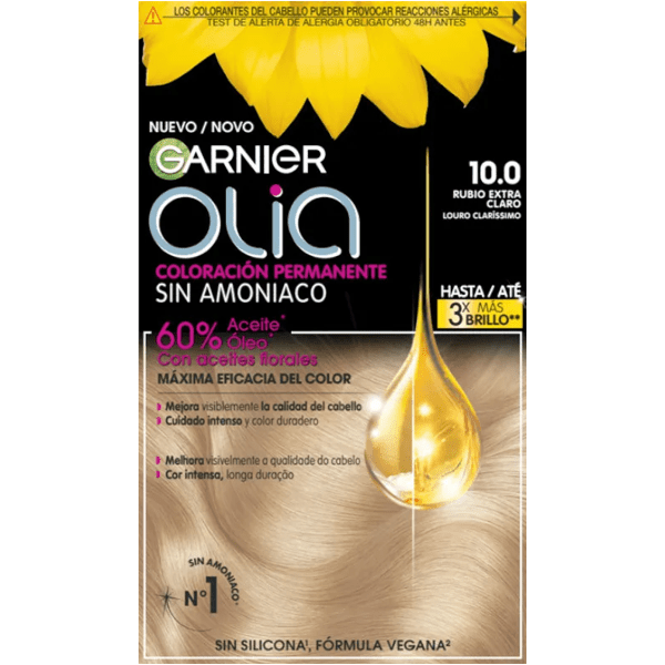 https://www.mifarma.eu/garnier-olia-permanent-coloration-without-ammonia-10-0-lightest-blonde429010666384Garnier Olia Permanent Coloration Without Ammonia 10.0 Lightest Blonde<p><span style="font-weight: bold;">Garnier Olia Permanent Coloration Without Ammonia 10.0 Lightest Blonde</span></p><p> Garnier Olia represents a revolution in the world of hair coloring, being the <span style="font-weight: bold;">number 1 ammonia-free permanent hair color,</span> recognized for its innovative formula that <span style="font-weight: bold;">combines floral oils.</span></p><p> This unique blend not only provides <span style="font-weight: bold;">vibrant, long-lasting color,</span> but also visibly improves hair quality, leaving it <span style="font-weight: bold;">softer and more manageable.</span></p><p> <span style="font-weight: bold;">The absence of ammonia</span> is one of Garnier Olia's most notable features, as <span style="font-weight: bold;">it minimizes damage and aggressiveness to the hair</span> during the coloring process. This allows the <span style="font-weight: bold;">hair to stay hydrated and nourished, preventing dryness and breakage</span> .</p><p> Additionally, the <span style="font-weight: bold;">floral oils</span> included in the formula, such as <span style="font-weight: bold;">rose flower oil and jojoba oil,</span> are known for their <span style="font-weight: bold;">moisturizing and softening properties,</span> contributing to a <span style="font-weight: bold;">shiny, healthy-looking finish.</span></p><p> The results are evident, as the color is long-lasting and durable, adapting to the needs of those seeking a professional finish in the comfort of their home.</p><p> <span style="font-weight: bold;">TONE:</span> <span style="font-weight: 700;">10.0 Very Light Blonde.</span></p>https://assets.atida.com/transform/bd9e1be5-5a28-49d8-9fb7-29ac6e63b719/Garnier-Olia-Coloracion-Permanate-Sin-Amoniaco-10-0-Rubio-Clarisimo?io=transform:extend,width:250,height:2508.99instock9.37.429751066115730.31Garnierhttps://www.mifarma.eu/media/catalog/product/c/8/8/3/c883ac4c981d87a3e31d9459cc271829148befa5_Garnier_Olia_Coloracion_Permanate_Sin_Amoniaco_10_0_Rubio_Clarisimo.png/Health and Hygiene/Hair Care/Coloring/Health and Hygiene/Health and Hygiene/Hair Care2025-10-01T14:05:04+0000