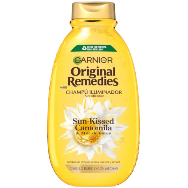 https://www.mifarma.eu/garnier-original-remedies-chamomile-illuminating-shampoo-400-ml458909400741Garnier Original Remedies Chamomile Illuminating Shampoo 400 ml<p><span style="font-weight: bold;">Garnier Original Remedies Chamomile Illuminating Shampoo 400 ml</span></p><p> This <span style="font-weight: bold;">shampoo</span> offers a transformative experience for <span style="font-weight: bold;">damaged hair.</span></p><p> This product stands out for its unique formula that combines <span style="font-weight: bold;">the power of three honeys:</span></p><p> <span style="font-weight: bold;">- acacia honey,</span> known for its <span style="font-weight: bold;">restorative</span> properties</p><p> <span style="font-weight: bold;">- Manuka honey,</span> which <span style="font-weight: bold;">strengthens</span> hair from the roots</p><p> <span style="font-weight: bold;">- lavender honey,</span> which deeply nourishes.</p><p> Together, these honeys work in synergy to provide <span style="font-weight: bold;">intense hydration and improve hair health, leaving it soft and manageable</span> .</p><p> This shampoo has been shown <span style="font-weight: bold;">to reduce hair breakage</span> , making it an ideal choice for those looking to restore the vitality of their hair.</p><p> In addition, its regular use not only <span style="font-weight: bold;">promotes the repair of damaged strands</span> , but also provides a <span style="font-weight: bold;">radiant shine,</span> making <span style="font-weight: bold;">hair look healthier and full of life</span> from the first application.</p><p> Suitable for <span style="font-weight: bold;">all types of damaged and brittle hair,</span> this shampoo <span style="font-weight: bold;">is paraben-free and formulated with naturally derived ingredients,</span> reflecting Garnier's commitment to sustainability and consumer well-being.</p><p> The shampooing experience becomes a moment of care and well-being, making each use a sensorial pleasure. Ideal for those who want strong, nourished, and beautiful hair.</p>https://assets.atida.com/transform/4ccf3a97-fa87-4b1e-8d2e-17f137680917/Garnier-Original-Remedies-Champu-Iluminador-Camomila-400-ml?io=transform:extend,width:250,height:2503.49outofstock3.992.8842965206612130.5Garnierhttps://www.mifarma.eu/media/catalog/product/0/3/9/4/0394ee89b74ff7f41bece6138f2857dad52b460c_Garnier_Original_Remedies_Champu_Iluminador_Camomila_400_ml.png/Health and Hygiene/Hair Care/Hair Shampoo/Health and Hygiene/Health and Hygiene/Hair Care/3x2 on Garnier, LOréal Paris, Maybelline & Mixa2025-10-01T14:06:18+0000