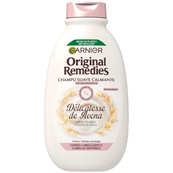 https://www.mifarma.eu/garnier-original-remedies-oatmeal-shampoo-400-ml134507997135Garnier Original Remedies Oatmeal Shampoo 400 ml<p><span style="font-weight: bold;">Garnier Original Remedies Oatmeal Shampoo 400 ml</span></p><p> The Gentle Soothing Shampoo has been specially <span style="font-weight: bold;">formulated to offer an effective and gentle solution for those with sensitive scalps</span> .</p><p> Its <span style="font-weight: bold;">hypoallergenic formula</span> acts as a protective shield that <span style="font-weight: bold;">not only moisturizes, but also protects both the hair and scalp from external aggressions</span> .</p><p> This shampoo stands out for its <span style="font-weight: bold;">enrichment with oat milk, known for its moisturizing and nourishing properties, which promote the restoration of the skin barrier</span> .</p><p> In addition, <span style="font-weight: bold;">rice cream</span> , a traditional ingredient in cosmetics, provides softness and soothing, making hair more manageable and shiny.</p><p> Regular use of this shampoo not only improves scalp health, but also <span style="font-weight: bold;">contributes to stronger hair that is less prone to breakage</span> .</p><p> Ideal for those seeking hair care that respects the sensitivity of the scalp without sacrificing effective cleansing and hair care.</p>https://assets.atida.com/transform/81f29570-bd80-4c43-b1f7-07f296822a2a/Garnier-Original-Remedies-Champu-Avena-400-ml?io=transform:extend,width:250,height:2503.49outofstock3.992.8842965206612130.5Garnierhttps://www.mifarma.eu/media/catalog/product/4/b/a/a/4baa49d0b000c139d954ef1752a4f0b82a4dfb29_Garnier_Original_Remedies_Champu_Avena_400_ml.png/Health and Hygiene/Hair Care/Hair Shampoo/Health and Hygiene/Health and Hygiene/Hair Care/3x2 on Garnier, LOréal Paris, Maybelline & Mixa2025-10-01T13:51:35+0000