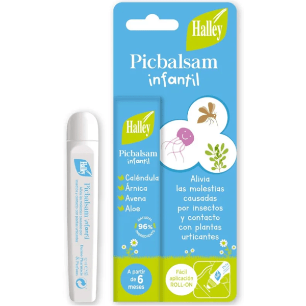 https://www.mifarma.eu/halley-picbalsam-children-39-s-roll-on-12-ml734392435768Halley Picbalsam Children's Roll-On 12 ml<p><span style="font-weight: bold;">Halley Picbalsam Children's Roll-On 12 ml</span></p><p> It offers <span style="font-weight: bold;">instant relief</span> from itching and discomfort caused by various situations, such as <span style="font-weight: bold;">mosquito and other insect bites, contact with stinging plants and jellyfish,</span> as well as episodes of nonspecific itching.</p><p> Its formulation is based on <span style="font-weight: bold;">natural plant extracts</span> that are recognized for their <span style="font-weight: bold;">calming and antipruritic properties</span> , including Arnica, Aloe, Oat and Calendula.</p><p> <span style="font-weight: bold;">Arnica</span> is known for its <span style="font-weight: bold;">anti-inflammatory effects</span> and its <span style="font-weight: bold;">ability to relieve pain and skin irritation</span> .</p><p> <span style="font-weight: bold;">Aloe vera</span> , for its part, is famous for its <span style="font-weight: bold;">moisturizing and regenerative properties</span> , making it ideal for soothing damaged skin.</p><p> <span style="font-weight: bold;">Oats</span> are an ingredient traditionally <span style="font-weight: bold;">used to soften skin and reduce inflammation.</span></p><p> <span style="font-weight: bold;">Calendula</span> is valued for its ability to <span style="font-weight: bold;">promote healing and relieve irritation</span> .</p><p> Scratching may provide temporary relief, but it often becomes a bigger problem by damaging the skin and increasing irritation. That's why <span style="font-weight: bold;">Picbalsam Children's Roll-On 12 ml</span> is a <span style="font-weight: bold;">safe and effective option</span> to soothe itching without the adverse effects associated with scratching.</p><p> This product is <span style="font-weight: bold;">suitable for children from 6 months of age</span> , making it an <span style="font-weight: bold;">affordable solution for the whole family</span> . Halley Picbalsam provides a fast and effective response to discomfort, helping to <span style="font-weight: bold;">restore comfort and well-being to the skin</span> .</p><p> <span style="font-weight: bold;">Benefits:</span></p><ul><li> Immediate relief from itching and discomfort from insect bites.</li><li> Effective against contact with stinging plants and jellyfish.</li><li> Suitable for use from 6 months of age.</li></ul>https://assets.atida.com/transform/74cbb1d2-e4c8-4333-8e9f-01a2d090fe1d/Halley-Picbalsam-Infantil-Roll-On-12-ml?io=transform:extend,width:250,height:2507.99instock8.986.603304785124110.99Halleyhttps://www.mifarma.eu/media/catalog/product/5/f/2/2/5f22df985bfcdabe219cd1034477f8a6718ce6e7_Halley_Picbalsam_Infantil_Roll_On_12_ml.png/First Aid Kit/Repellents/First Aid Kit2026-04-16T00:09:41+0000